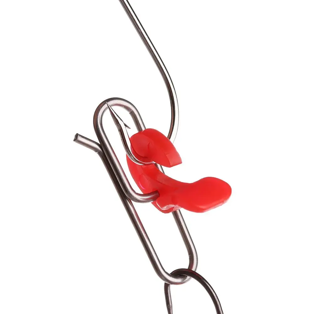 Material: PE + stainless steel Color: Black/Red Size: 16x10x7mm/0.62*0.39*0.27'' 10pcs net weight: 9g Package Included: 10PCS* Bait Clip.