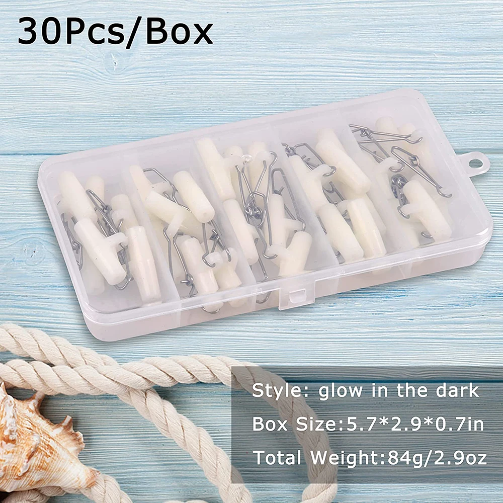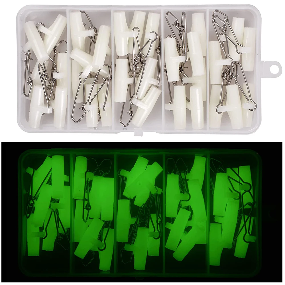 30 piezas de deslizadores de pesca de agua salada con broches de bloqueo Duo plomos deslizantes luminosos para conector de peso de línea de pesca