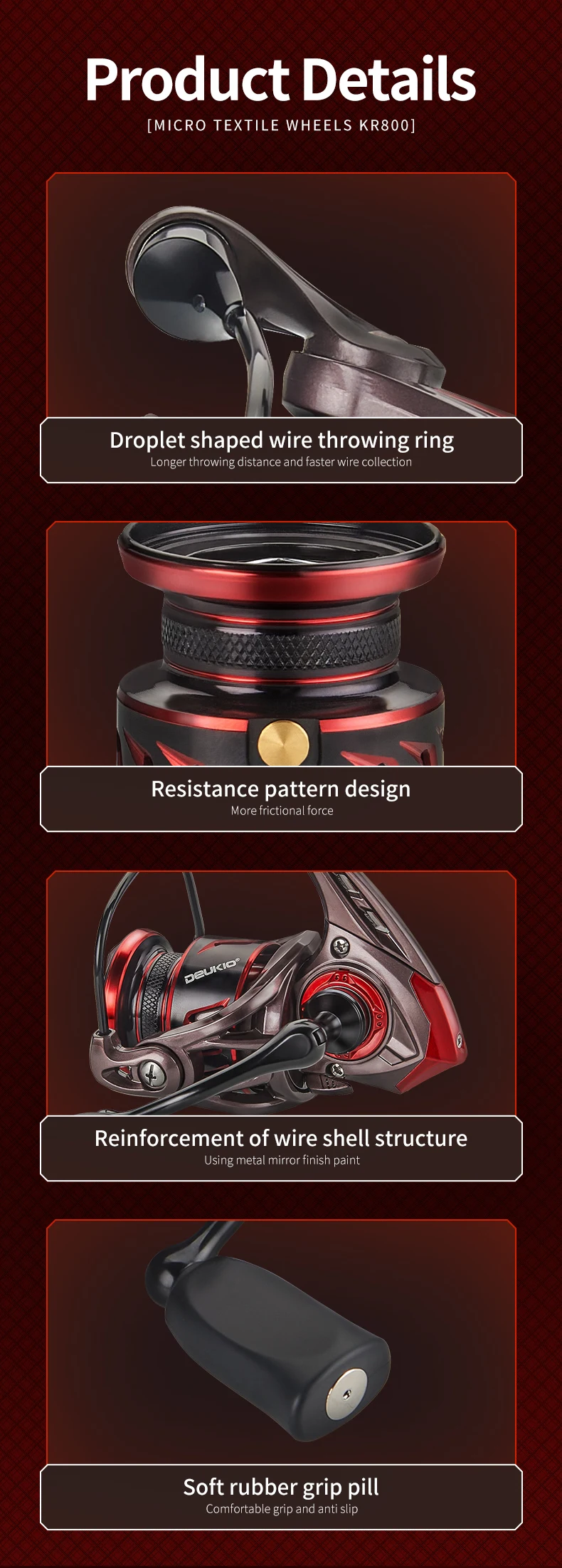DEUKIO 2024 nuevo innovador carrete giratorio resistente al agua 4 + 1BB 4,5 KG potencia máxima de arrastre 5,2: 1 carrete de pesca pesca en agua dulce