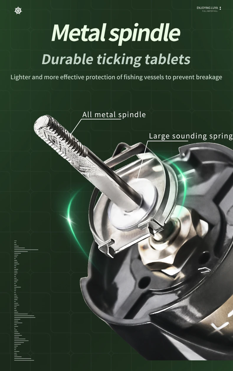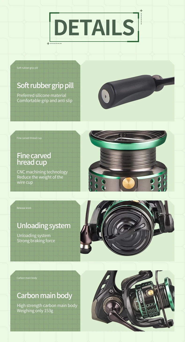 • Rueda giratoria de precarga:El diseño de la rueda giratoria de precarga garantiza un lanzamiento suave y fácil, lo que la hace ideal tanto para principiantes como para pescadores experimentados.