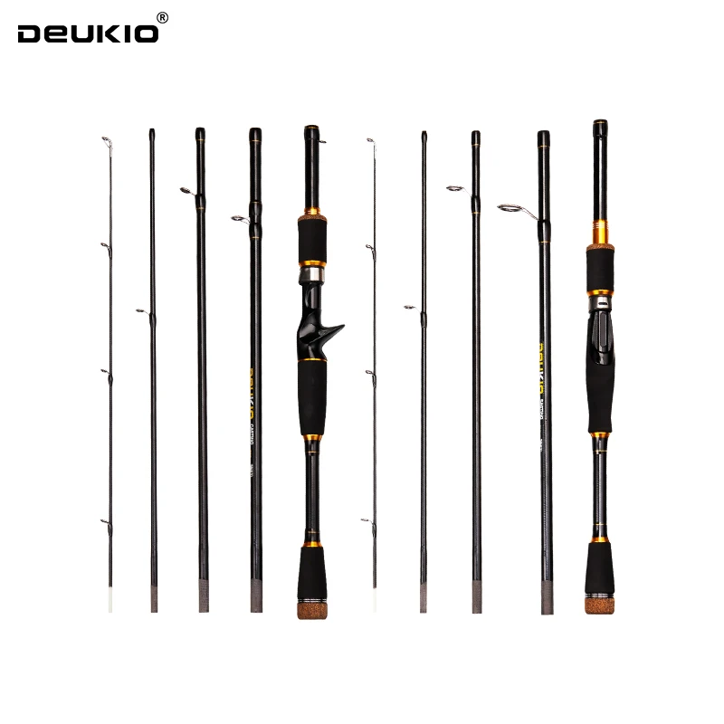 DEUKIO Baitcasting Spinning Travel Carbon 4/5 secciones cañas de pescar peso de fundición 5-20g potencia ultraligera señuelo trucha Mini poste