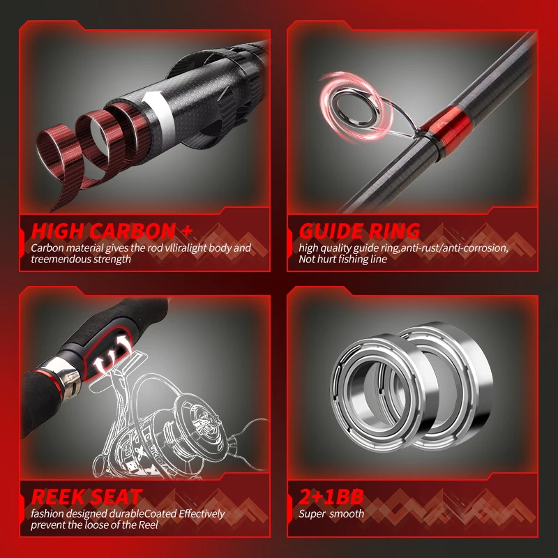 DEUKIO 1,8 M 2,1 M 2,4 M Combo de caña de pescar telescópica con carrete giratorio Conjunto de combinación Carrete de alta velocidad Serie 3000