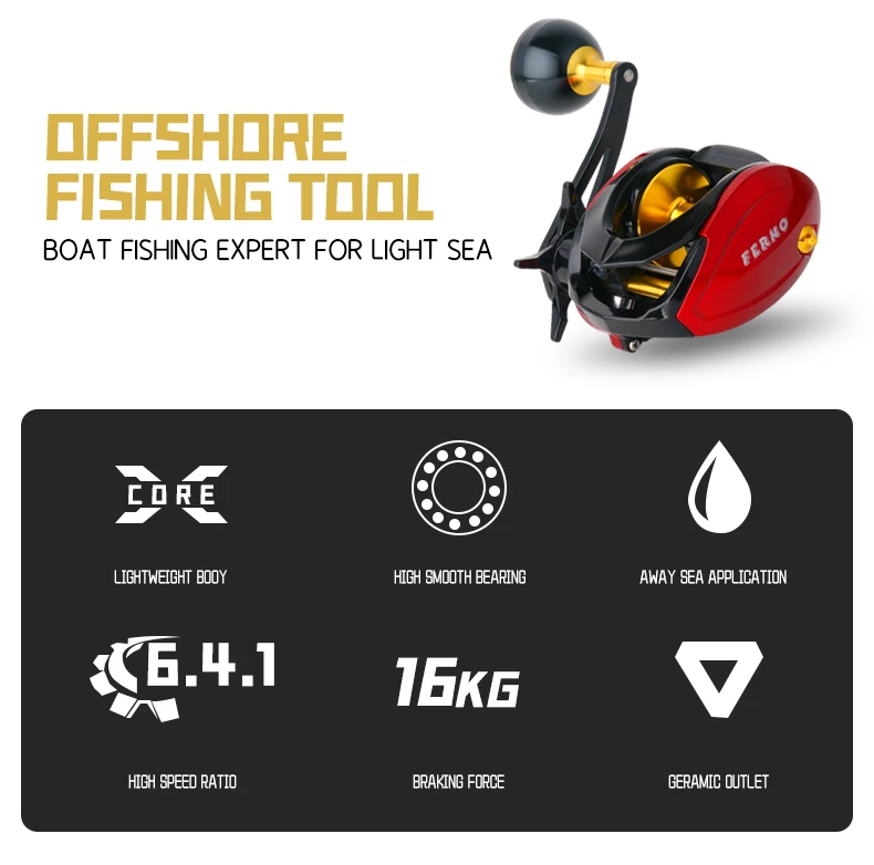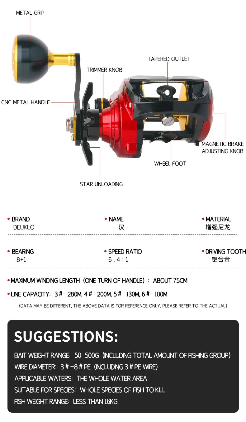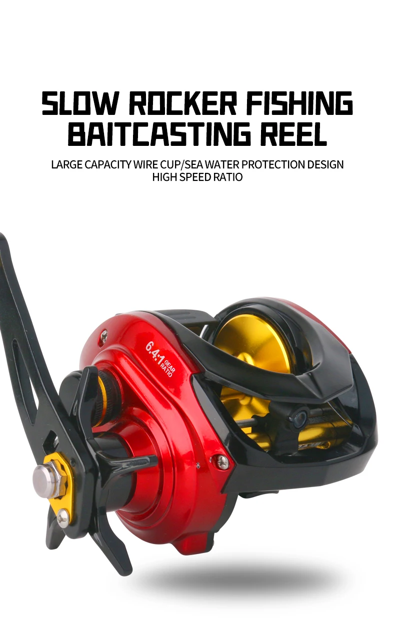 DEUKIO-carrete de Pesca Baitcasting 8 + 1BB 6,4: 1, carrete de Pesca de alta velocidad, línea de prevención de tiro largo, carrete de Pesca de agua salada fresca