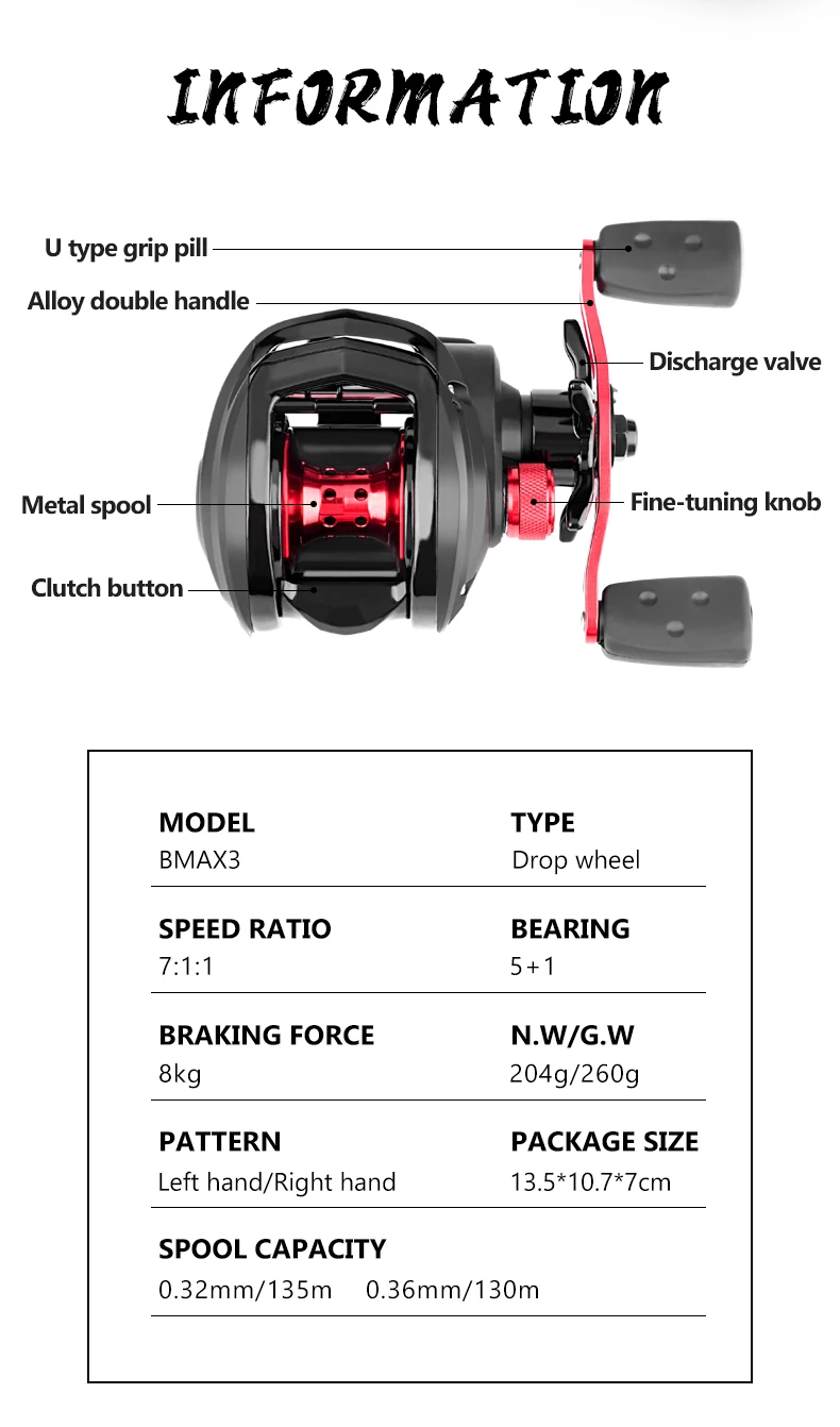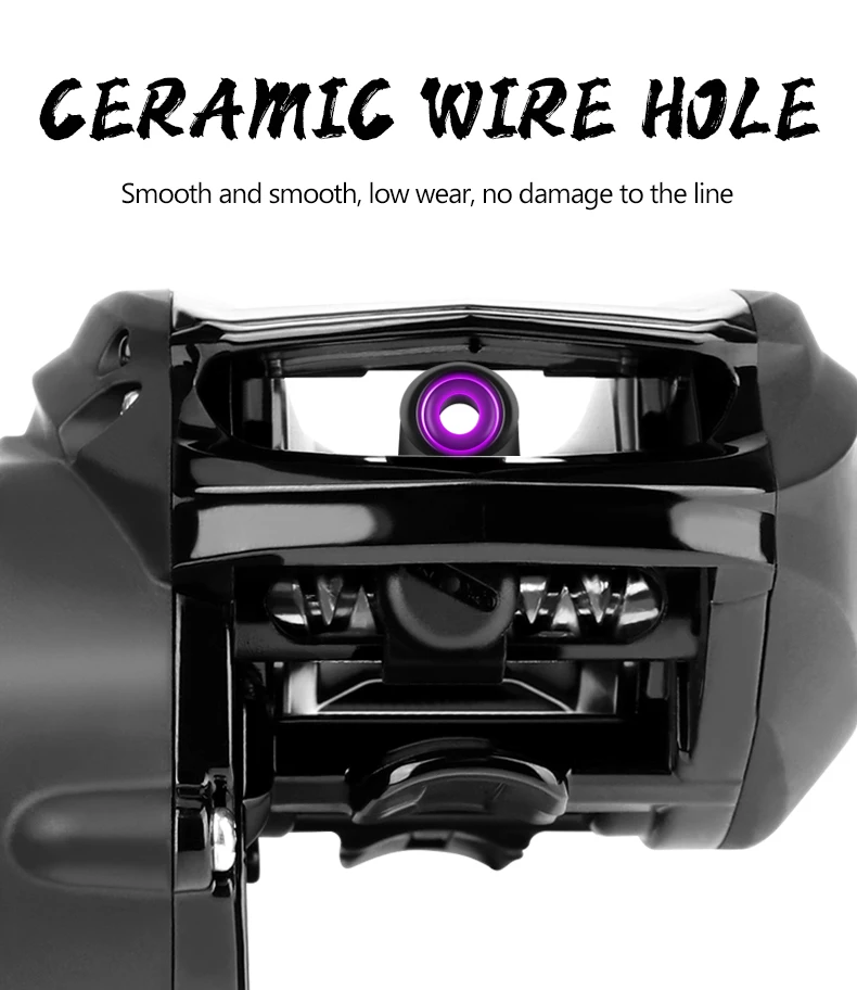 5. engranaje principal de latón para garantizar el grado de compromiso y resistencia al impacto entre los engranajes; 6. Diseño de copa de línea profunda y poco profunda en forma de V de aleación de aluminio; 7. Salida de alambre de cerámica, suave y no daña el cable;