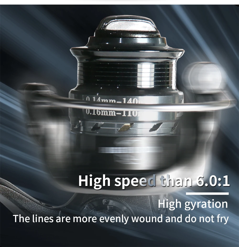 DEUKIO-carrete de pesca DS800, potencia de arrastre máxima de 5KG, carrete giratorio de Metal, pesca en agua salada 6,0: 1, pesca de lubina de alta velocidad