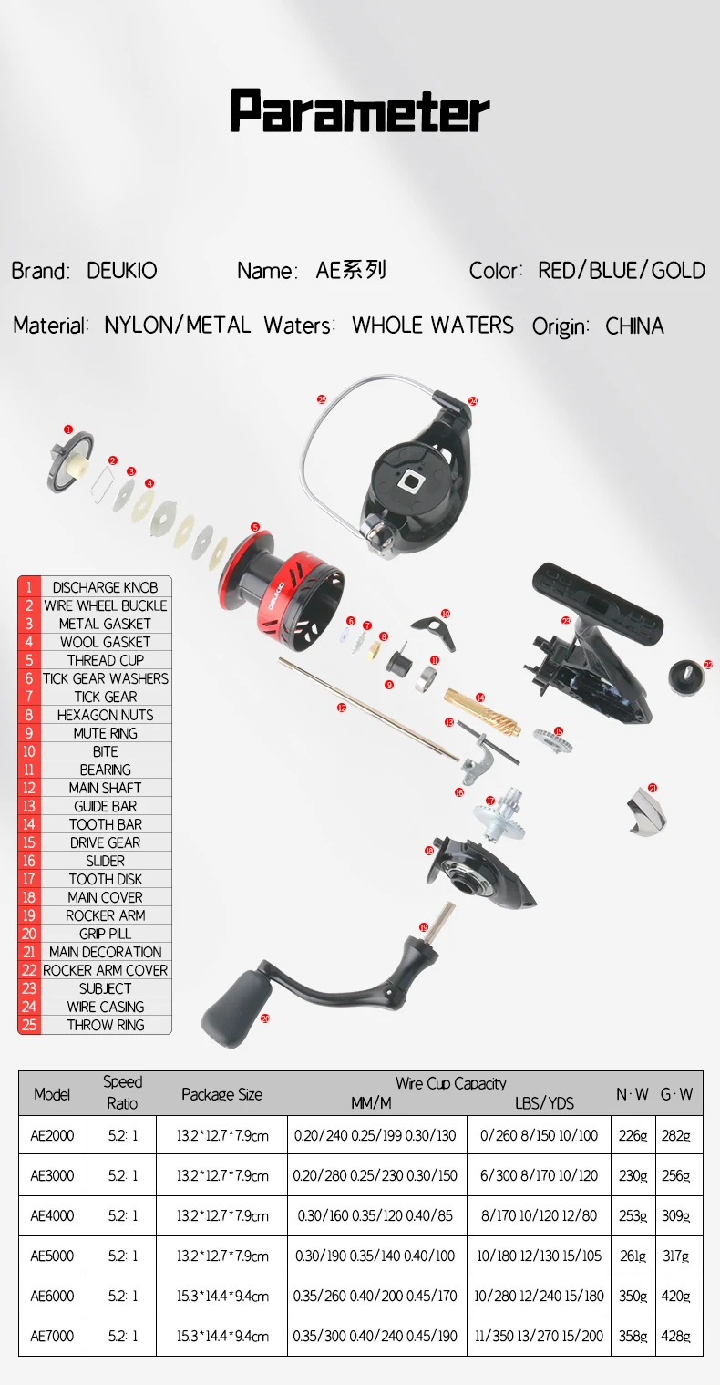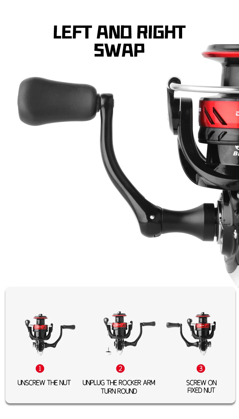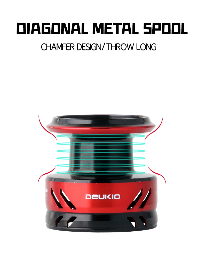 DEUKIO-carrete de pesca giratorio para agua dulce y salada, bobina de Metal CNC, relación de transmisión 1000: 1, arrastre máximo de 22lb, serie 7000 ~ 5,2, nuevo