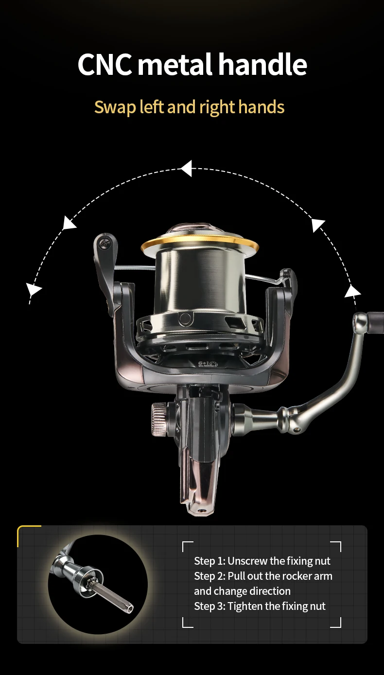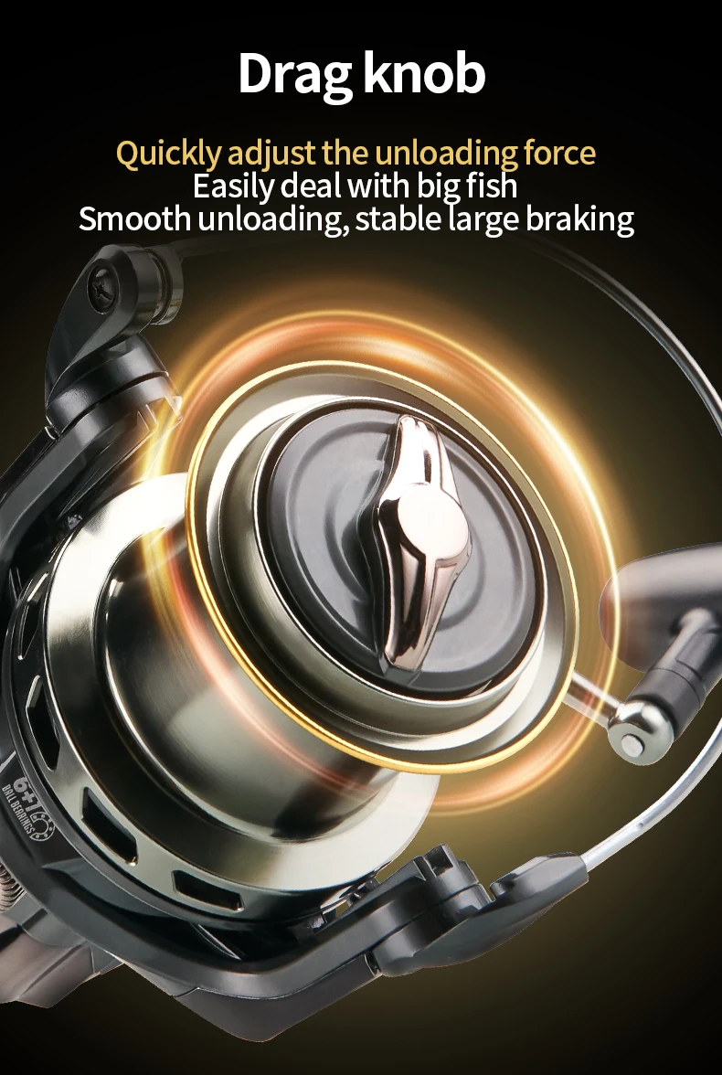 5. Perilla de descarga de gran calibre, Ajuste rápido de la fuerza de descarga, fácil de manejar peces grandes, fuerza de descarga suave, freno grande estable.