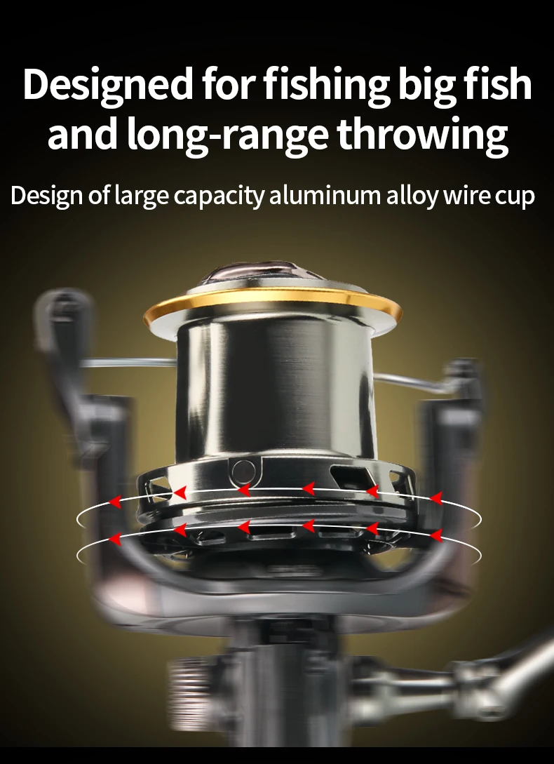1. Diseño de copa de alambre de aleación de aluminio de gran capacidad, especialmente diseñado para pescar peces grandes y lanzar de largo alcance