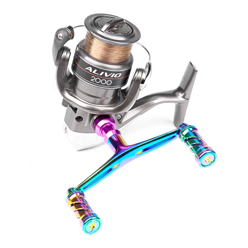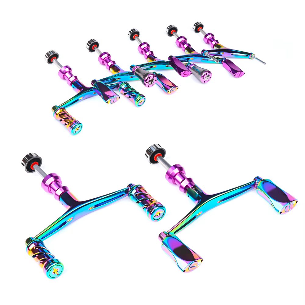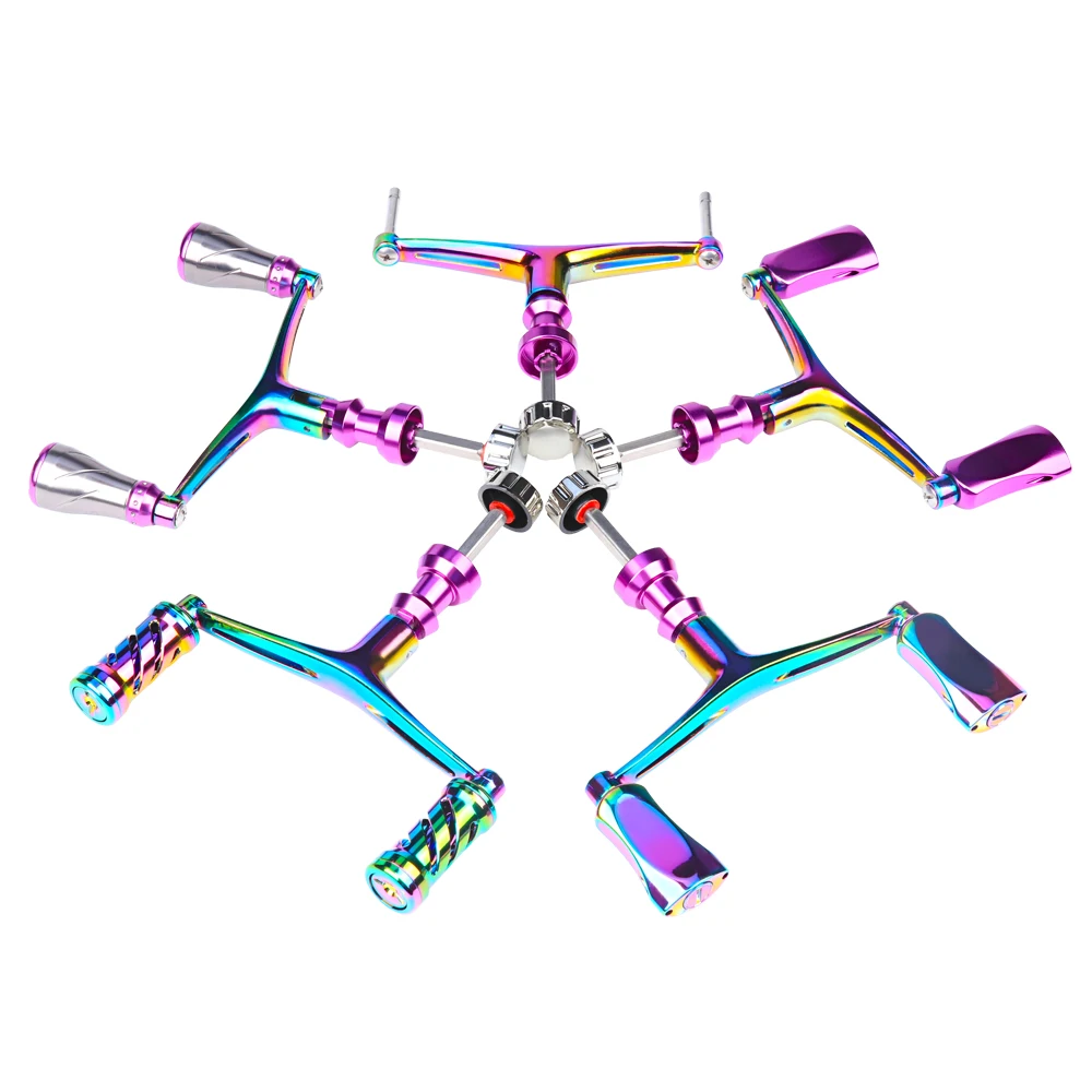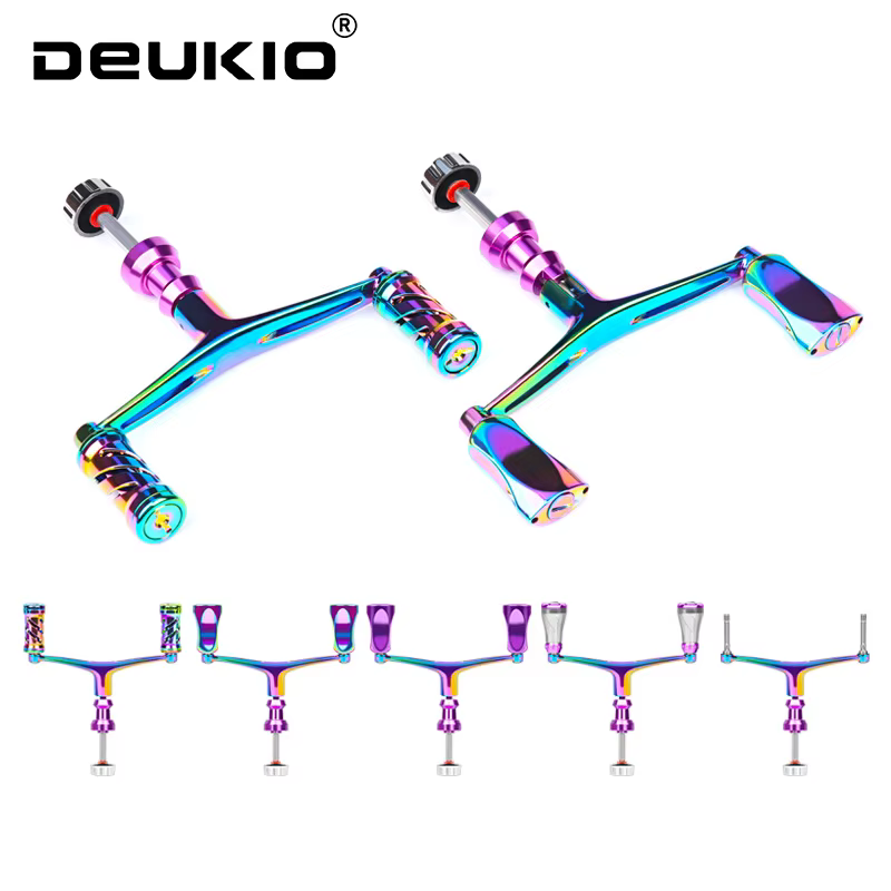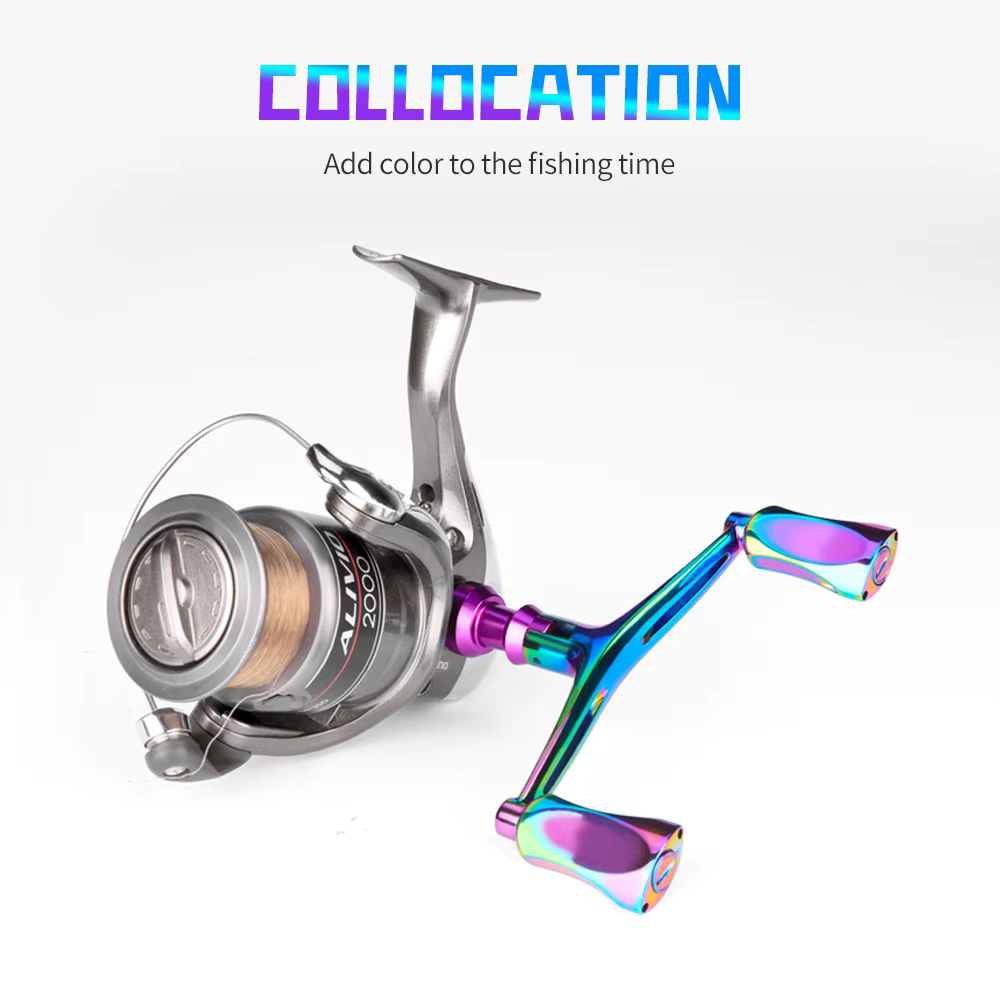 DEUKIO-carrete de pesca de Metal colorido, mango de bricolaje, brazo basculante para carrete giratorio S, mango de repuesto de doble agarre, accesorios de pesca