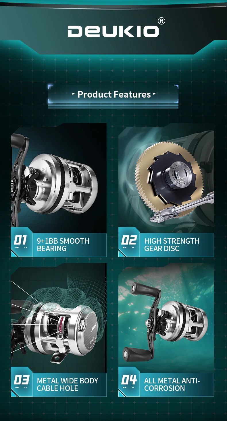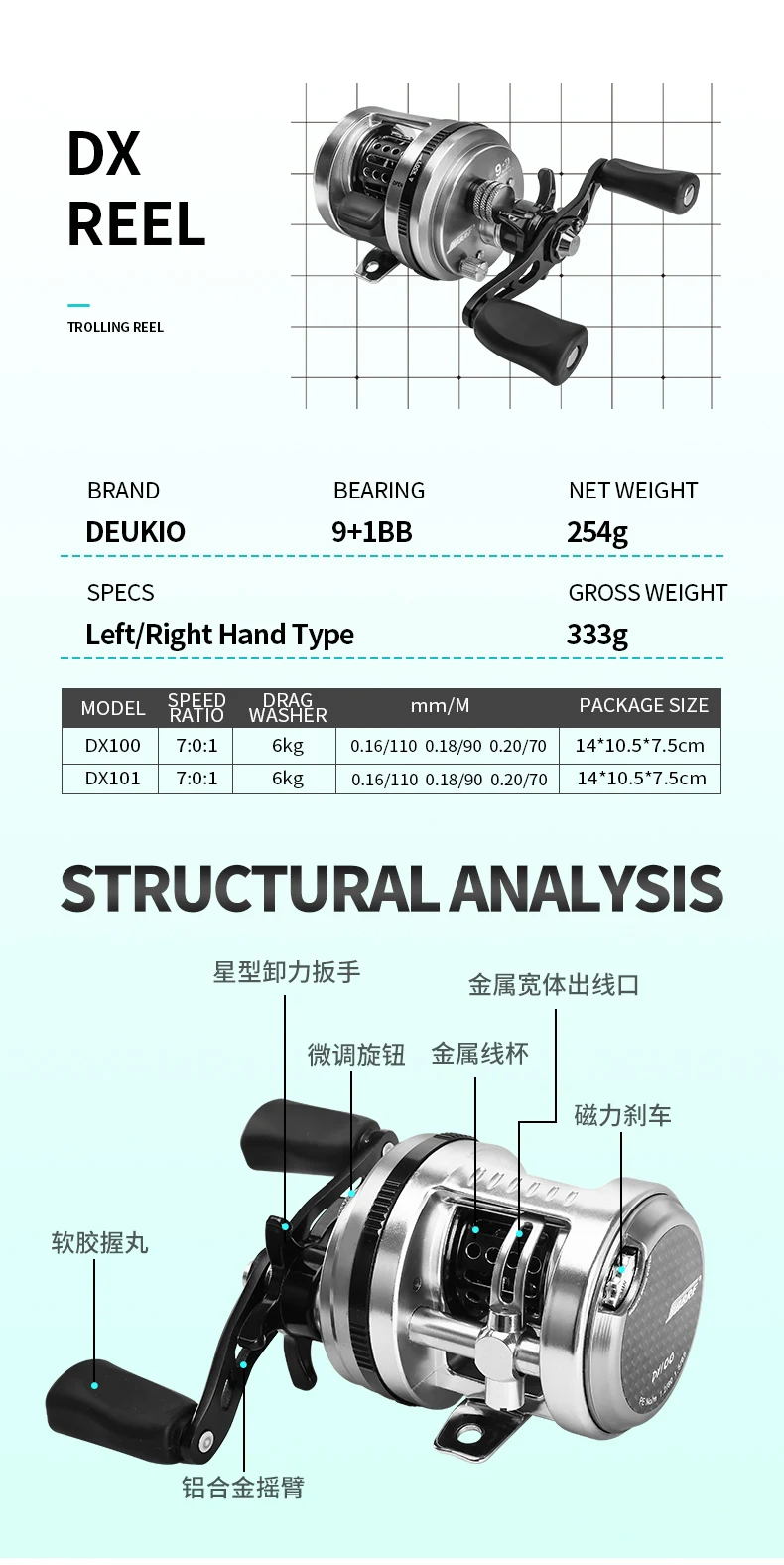 DEUKIO, nuevos carretes de Pesca de tambor de curricán, mano izquierda/derecha, carrete de curricán 9 + 1BB, arrastre máximo de 6kg, Pesca en alta mar