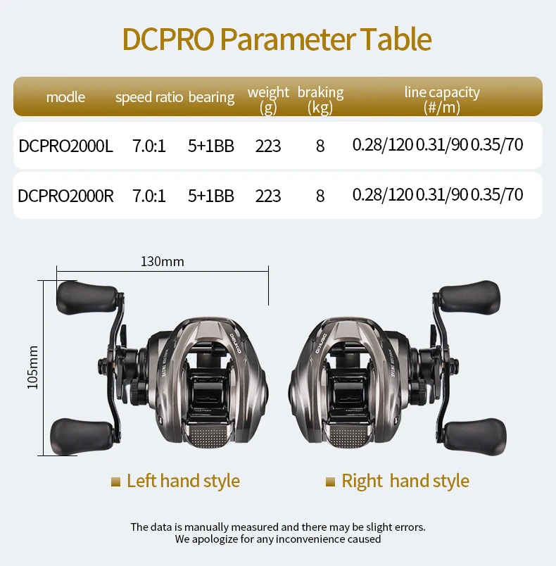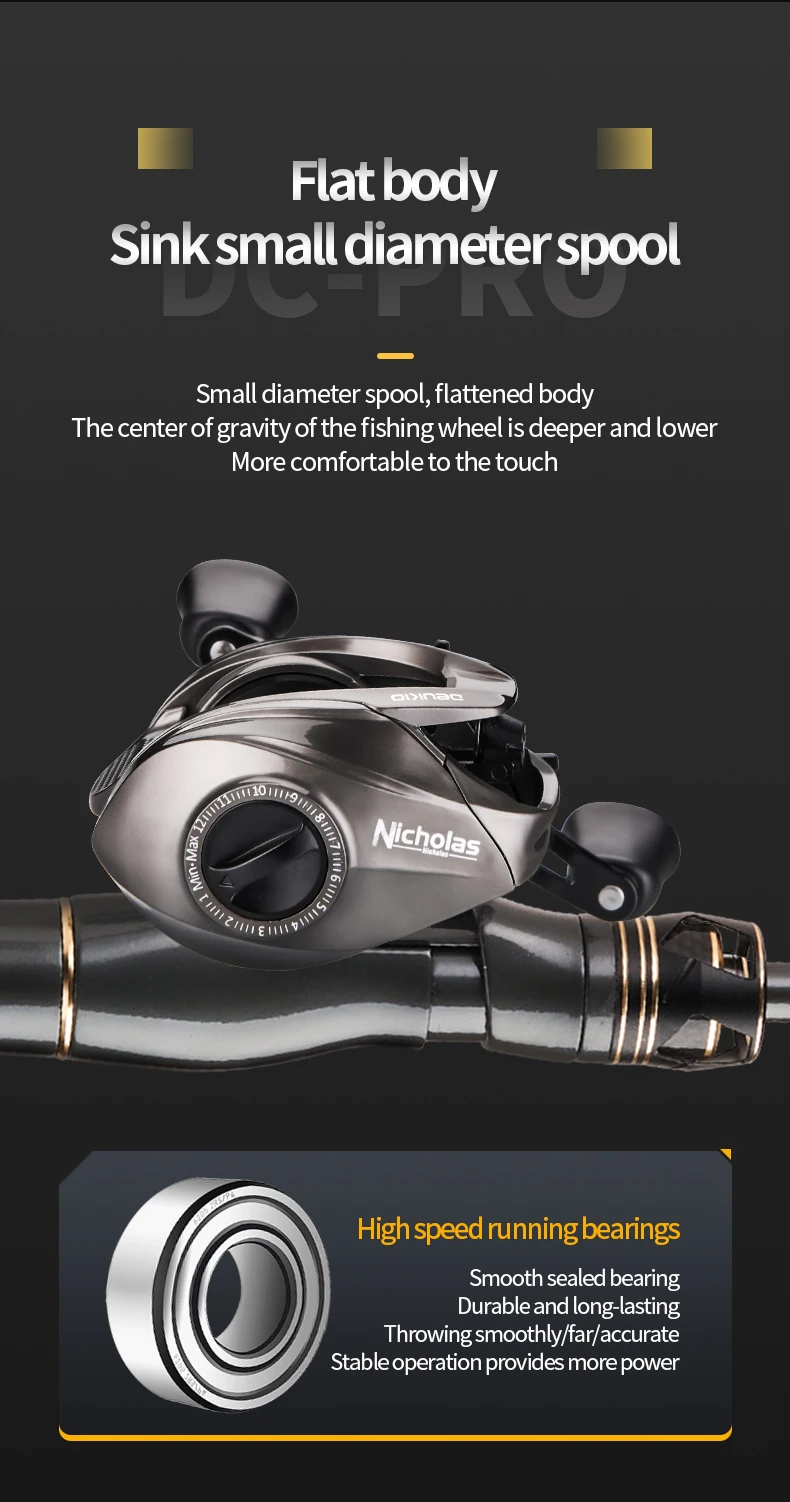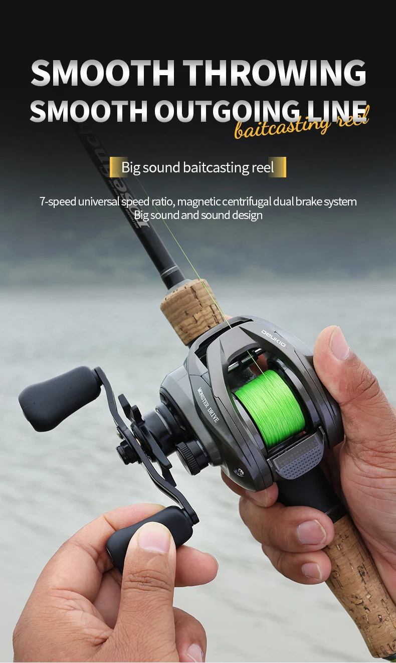 DEUKIO 1 carrete de pesca Baitcasting ultraligero 7.0:1 relación de engranaje agua salada 5+1BB 8KG doble potencia de arrastre Baitcaster agua dulce