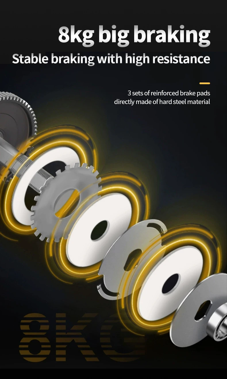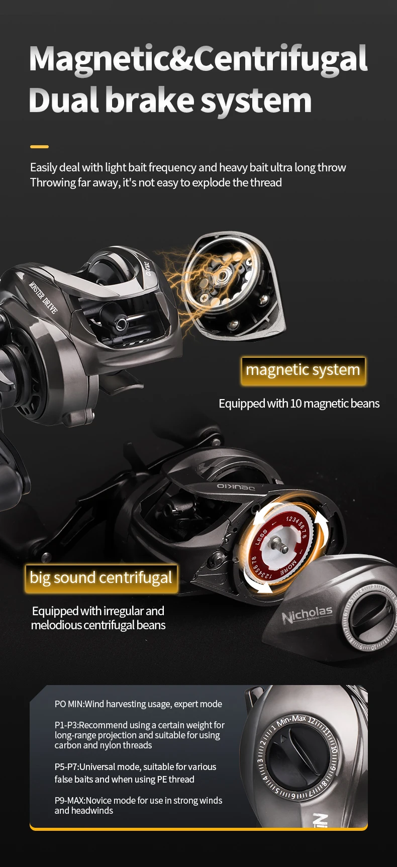 5.El sistema de freno de doble motor estable con freno magnético y centrífugo puede manejar fácilmente situaciones como la frecuencia del cebo ligero y el lanzamiento ultralargo de cebo pesado, y no es fácil explotar la línea.