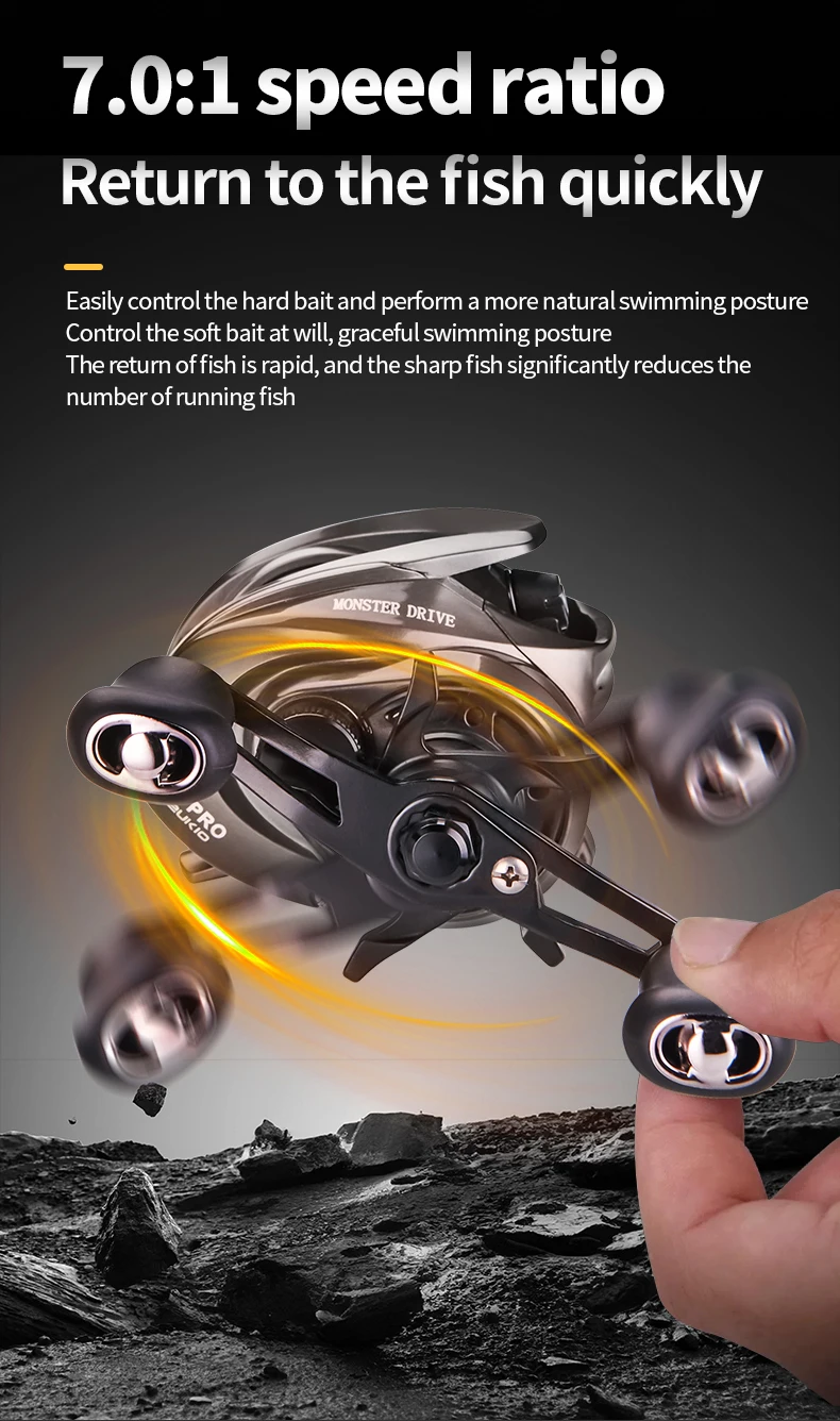 La relación de velocidad 2.7:0:1 controla el cebo rápidamente, devuelve a los peces rápidamente, levanta la caña para pescar rápidamente y arrastra instantáneamente a los peces sin obstáculos para evitar que corran.