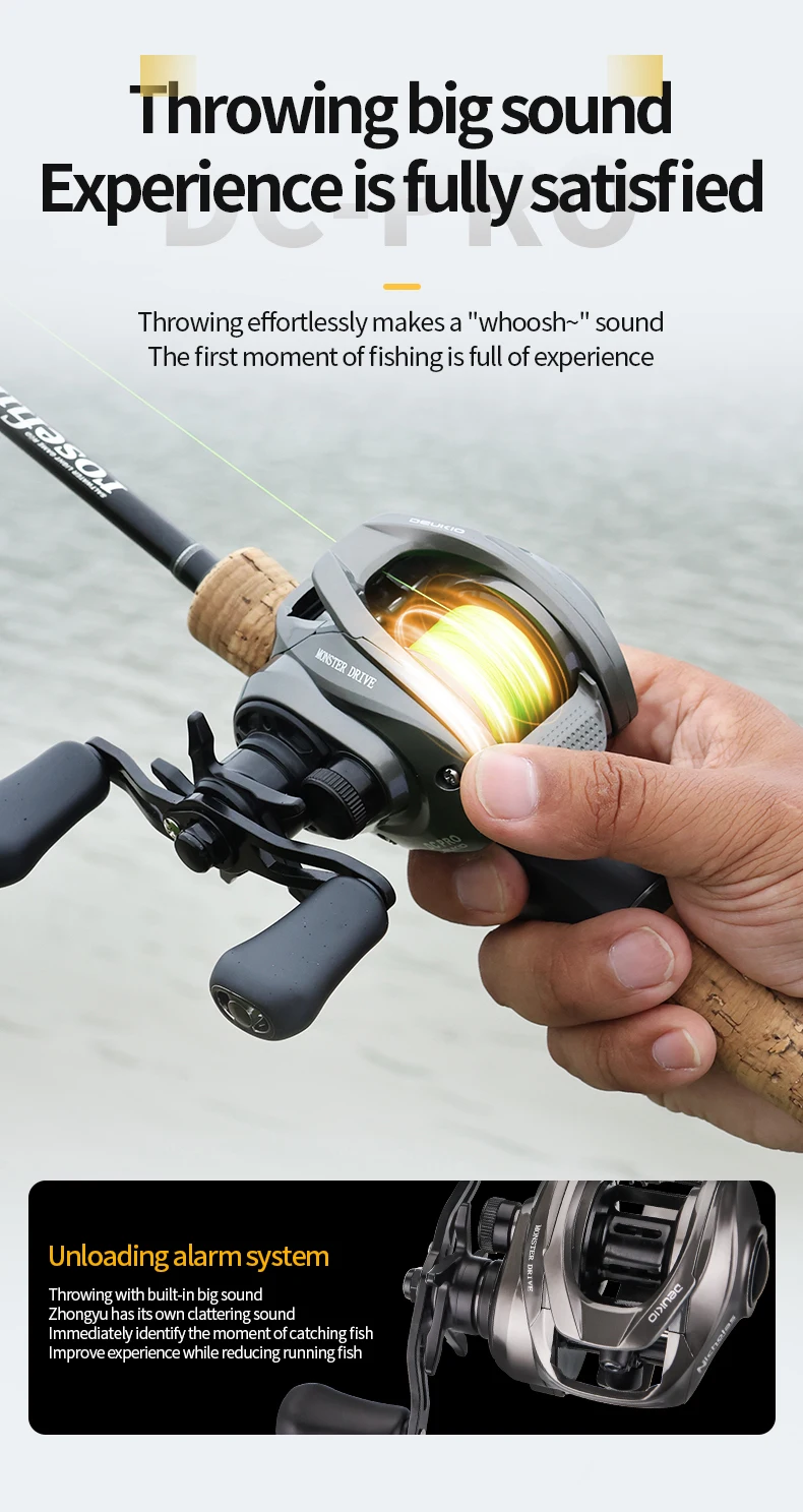 1.Descarga del sistema de alarma de peces, que emite un tictac nítido durante la pesca para mejorar la experiencia de pesca.El proceso de lanzamiento viene con un sonido de combustión único para aumentar la experiencia de lanzamiento.La cubierta de descarga de alta precisión evita resbalones.
