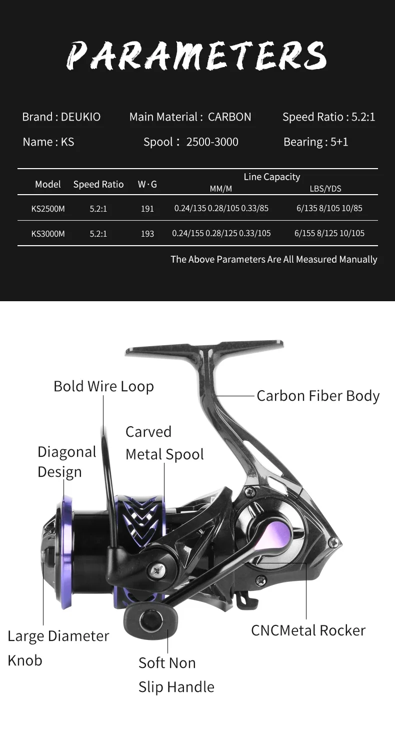 DEUKIO-Carretes de pesca de carbono, accesorio de bobina de pesca de agua salada, peso ligero, 5 + 1 rodamientos de bolas, 8kg de arrastre