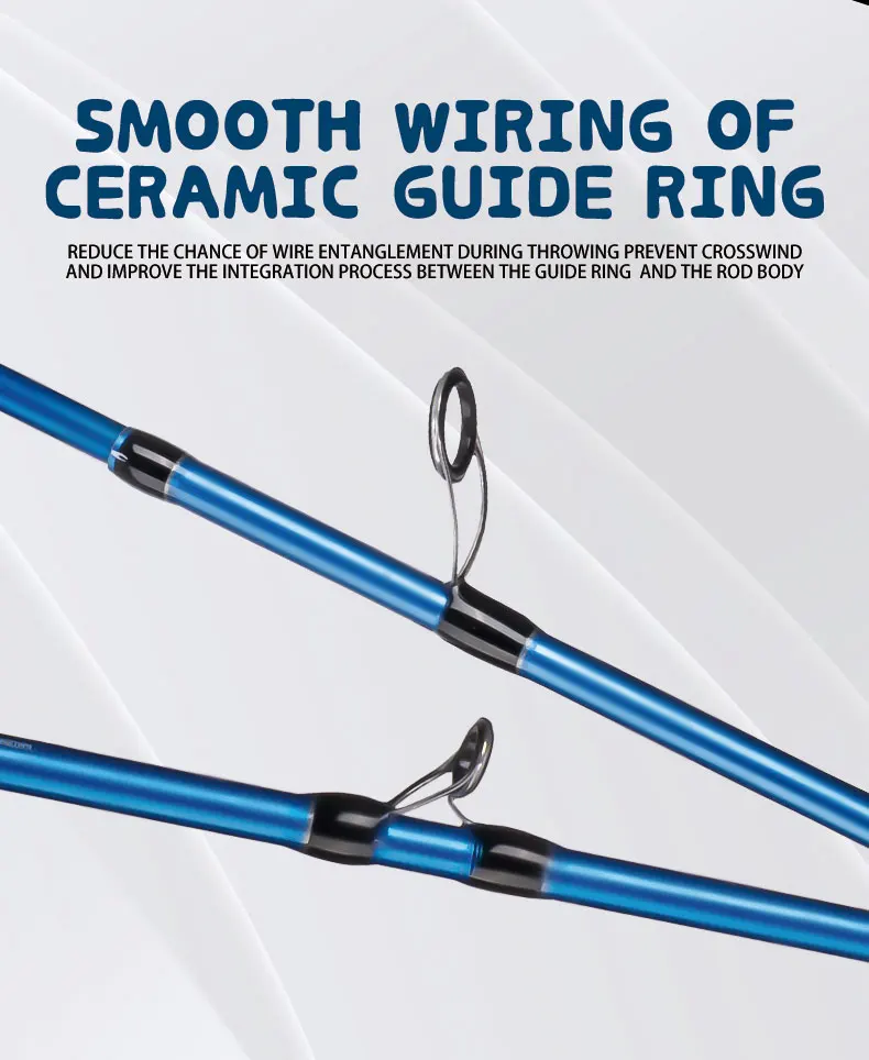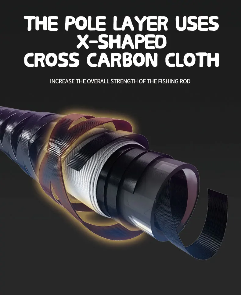 1. Esta caña de pescar está hecha de fibra de carbono, resistente y duradera.