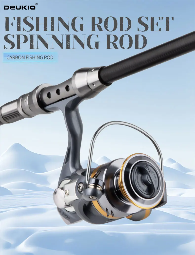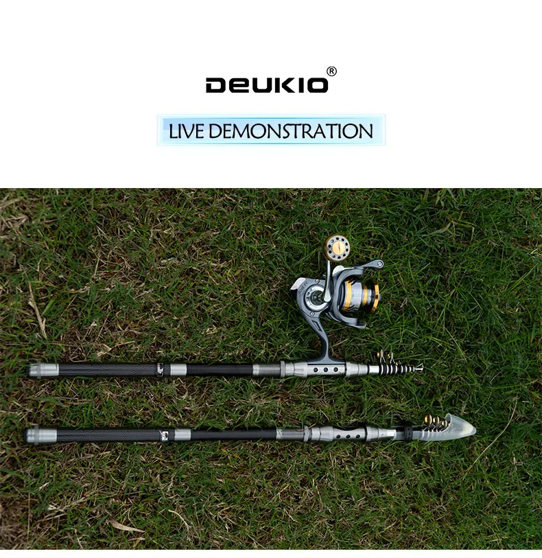DEUKIO-combinación de caña de pescar y carrete, caña de pescar telescópica, carrete giratorio, arrastre máximo de 8Kg para pesca en la playa, agua dulce y salada