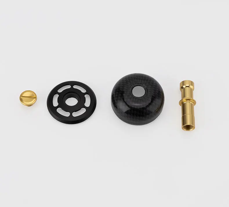 Es un pomo de aluminio con un patrón de carbono. Se está despegando en algunos lugares. El tornillo superior está atascado y no se puede quitar. ¿Se fija con pegamento? En otras palabras, no se puede utilizar como un pomo de manivela de carrete.