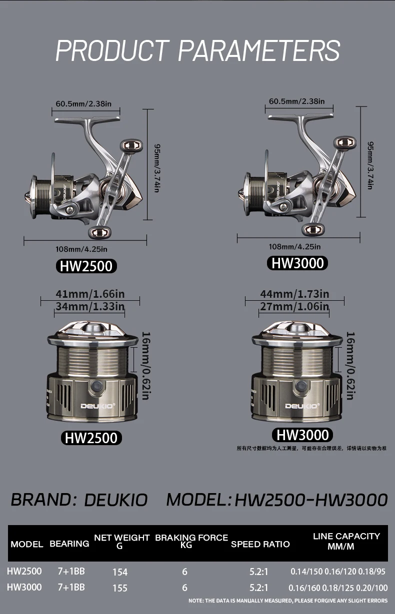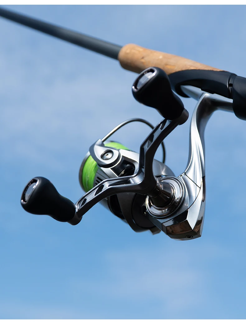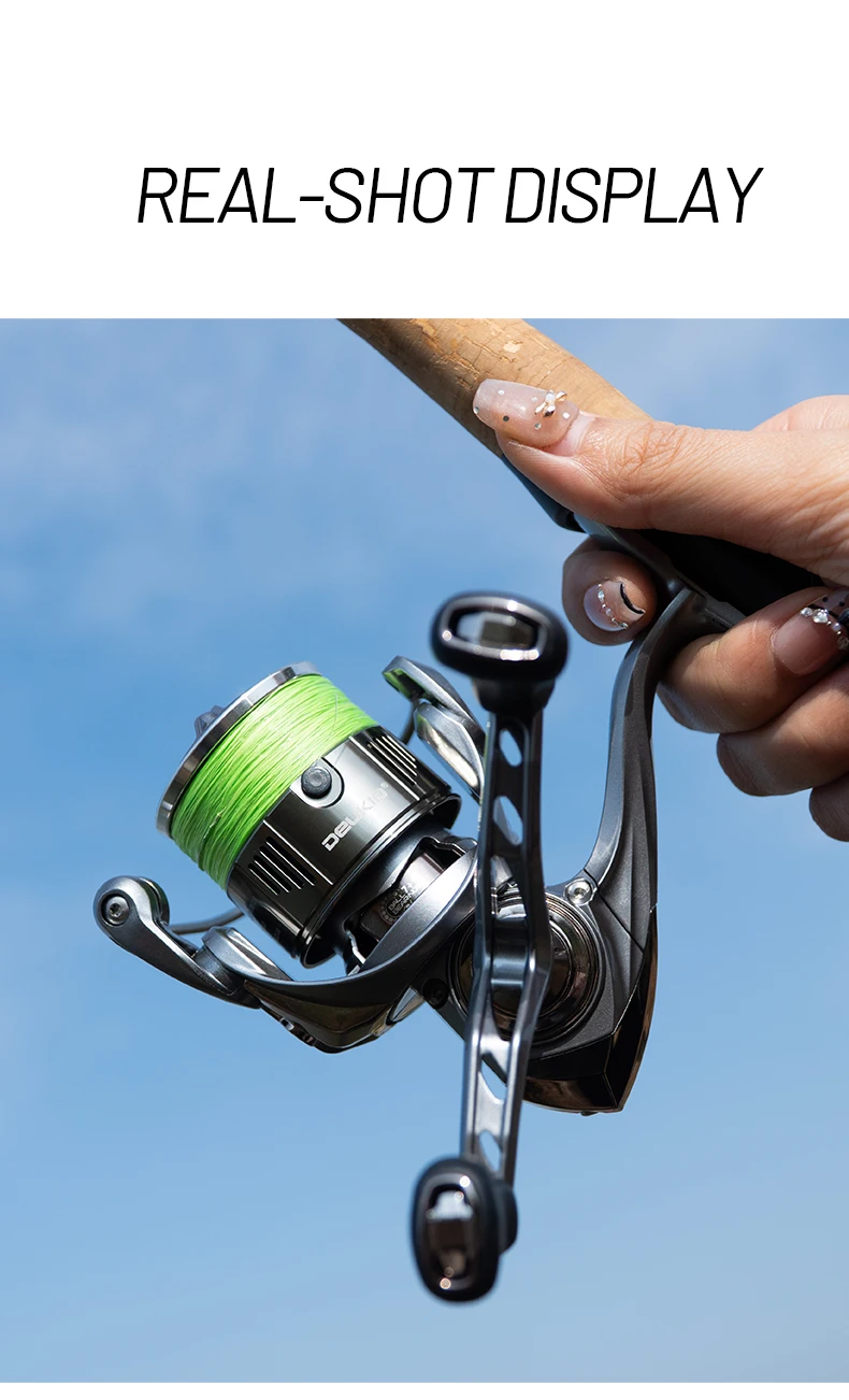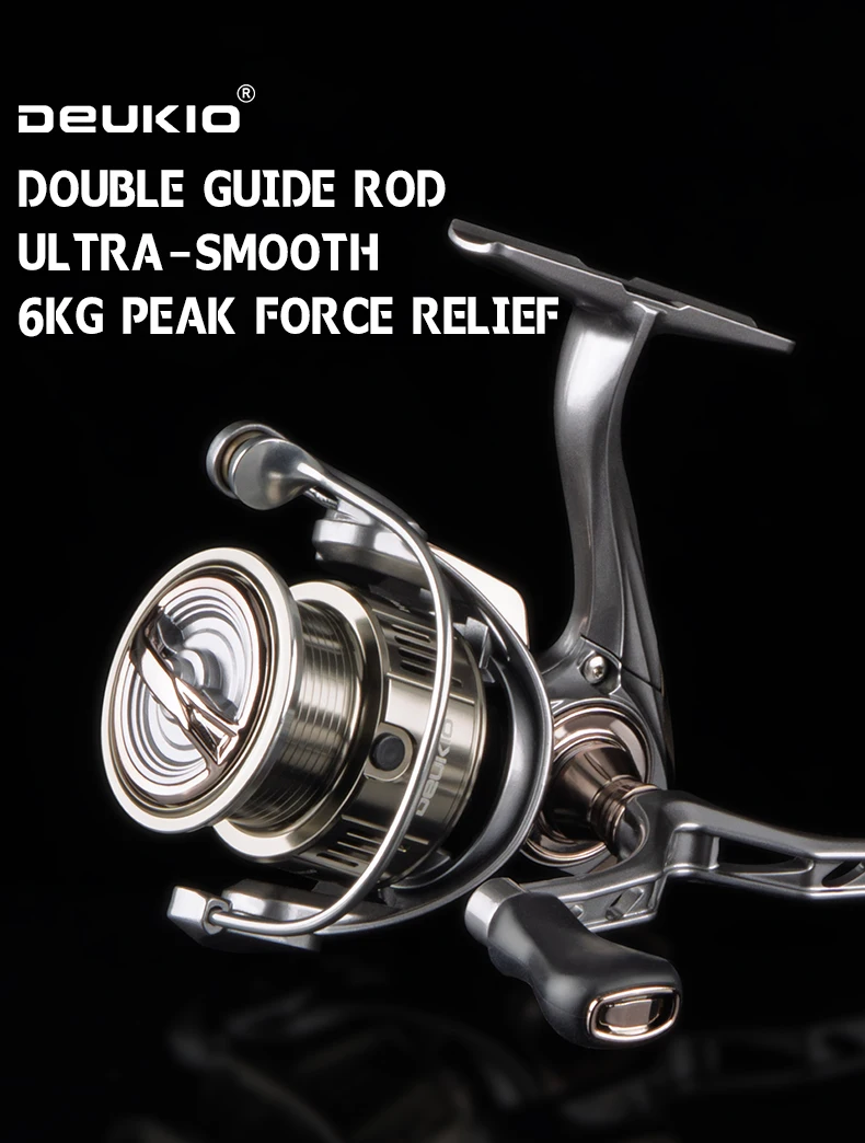 DEUKIO Dubbele Handvat Spinning Visserij-reel 7 + 1BB 5.2: 1 Max Drag 6 kg CNC Metalen Spoel Handvat Zoutwater zoetwatervisserij-reel