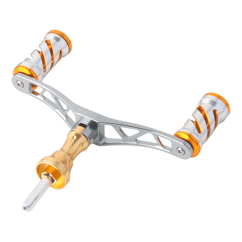 DEUKIO-manijas dobles de Metal para carrete de pesca giratorio, perillas de carrete de pesca, accesorio de bricolaje, marca S