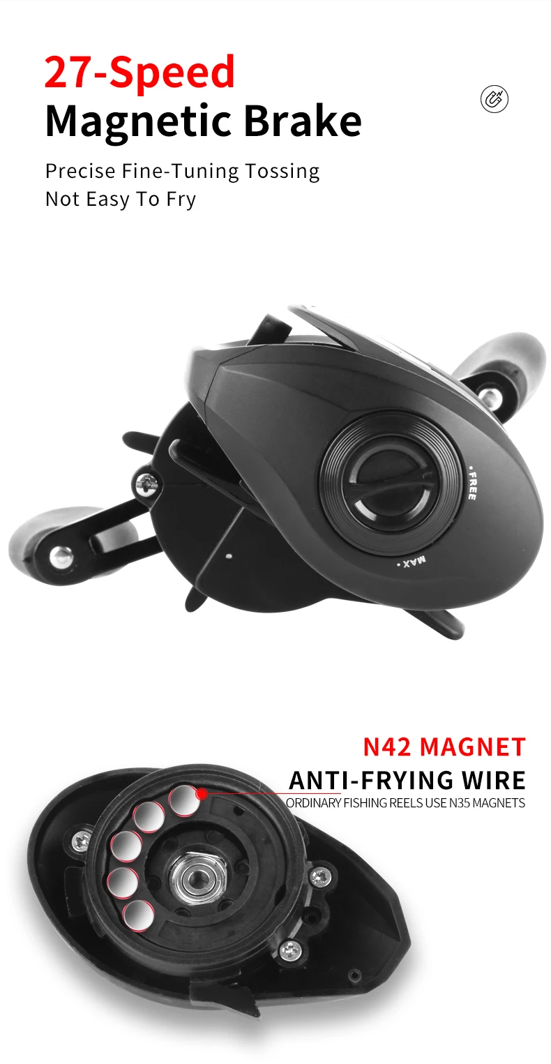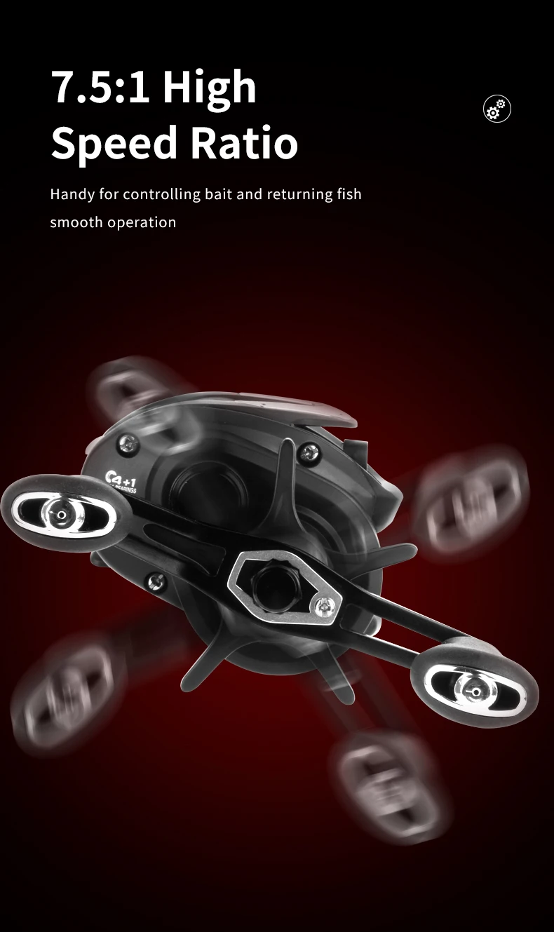 DEUKIO nuevo carrete de Baitcasting sistema de frenado magnético 7,5:1 relación de engranaje 4 + 1 rodamientos de bolas 8KG carrete de bobina de pesca de arrastre máximo