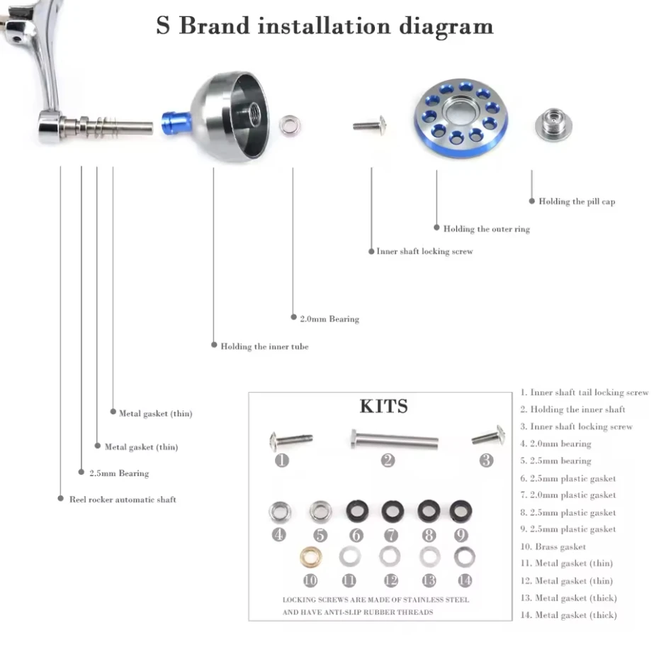 DEUKIO nuevo DIY 33MM perilla de agarre de carrete de pesca de Metal para S/D y otras marcas accesorios de modificación de carrete de Baitcasting giratorio