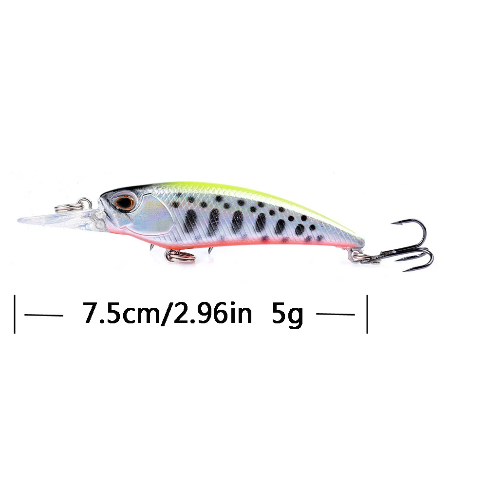 DHYJSFDC-señuelo de pesca flotante, cebo duro de 7,5 cm y 5g, manivela Wobbler de 5 colores, calidad profesional, profundidad de 2,0-2,5 m