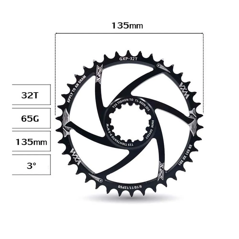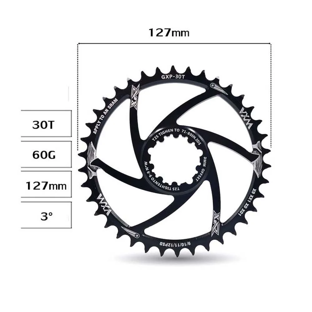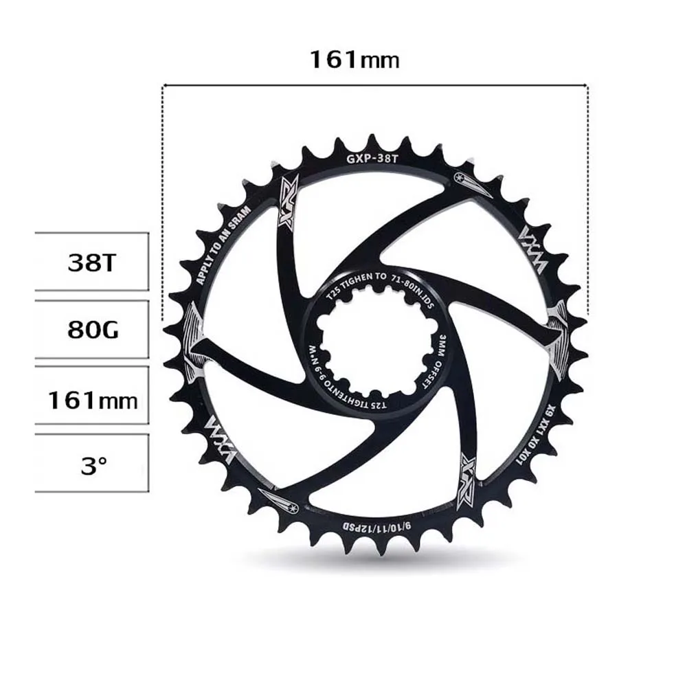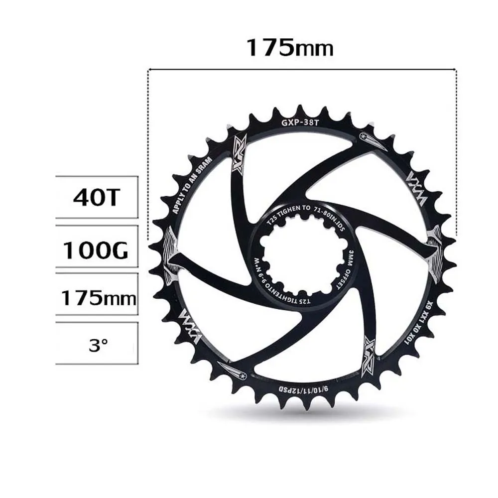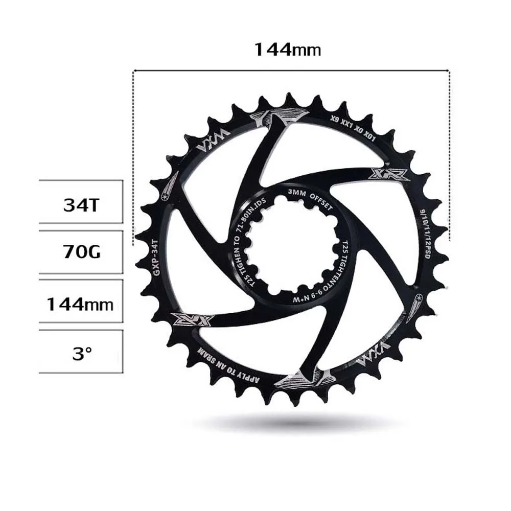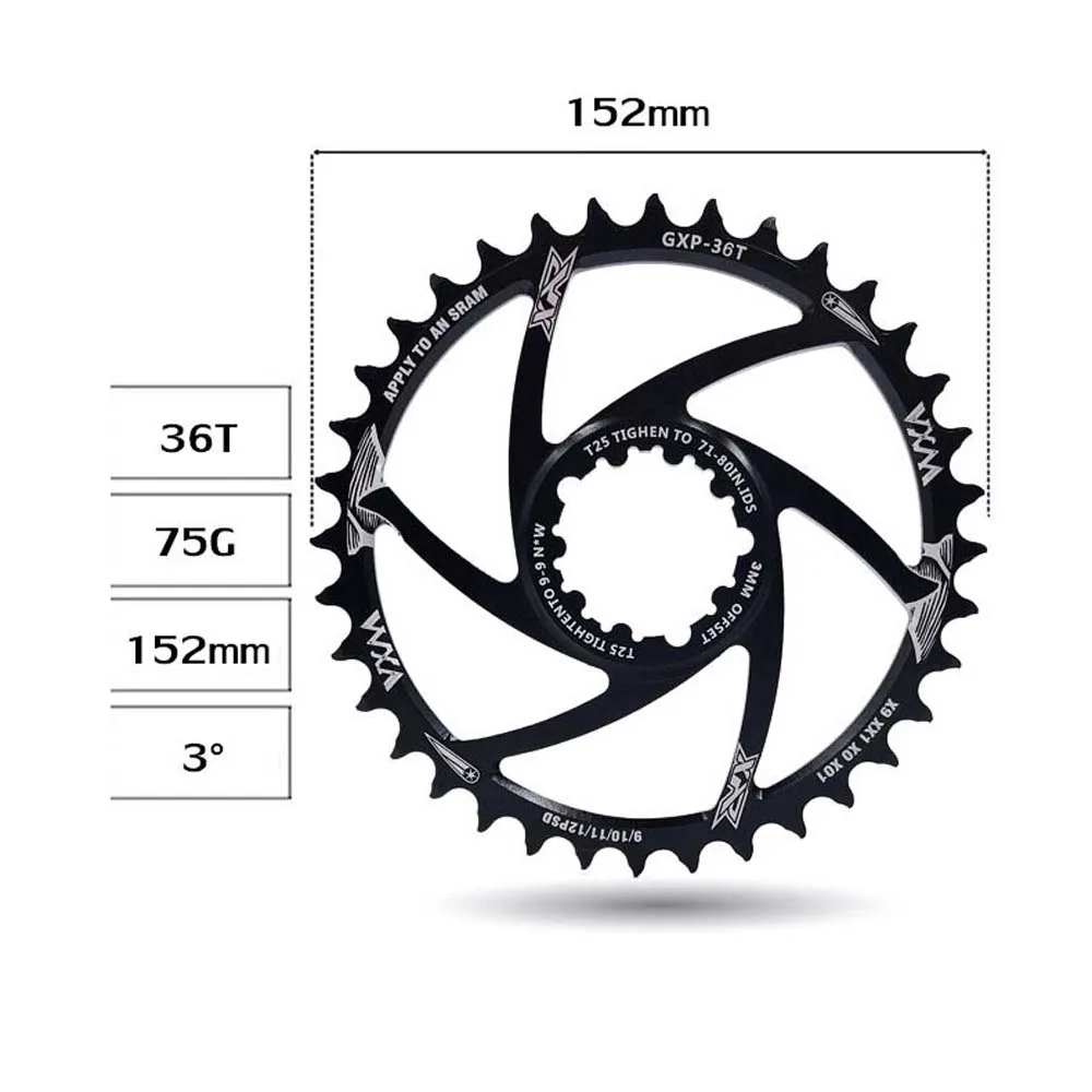 Tipo: Disco de diente positivo y negativo Material: aleación de aluminio Número de diente de disco GXP: 30/32/34/36/38/40T Offset:3mm Grosor: Disco 7mm; diente positivo 3,6mm, diente negativo 2,0mm Color: Negro El paquete incluye: 1 Placa de diente