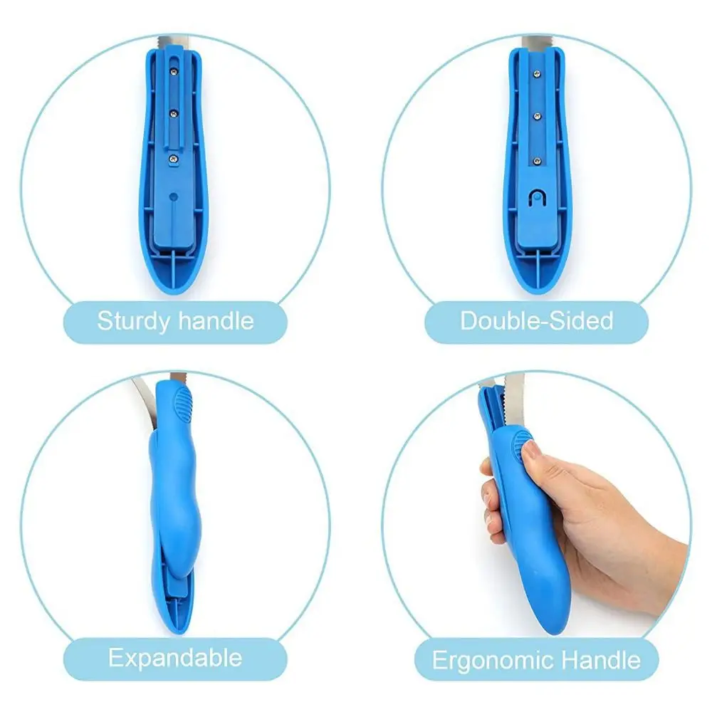 Tipo: cepillo de aseo para perros Tamaño: como en la imagen Color: Azul Característica: duradero, resistente Paquete: 1 pieza * Cepillo de aseo para perros Hecho de acero inoxidable de primera calidad, duradero y resistente. Este peine para mascotas está diseñado con acero inoxidable, que puede cortar eficazmente las alfombrillas y evitar daños a su mascota. El peinado regular puede eliminar fácilmente la piel muerta y evitar que el vello se caiga. El masaje cutáneo garantiza una mejor circulación. Adecuado para caballos, ovejas, vacas, perros, gatos, etc.