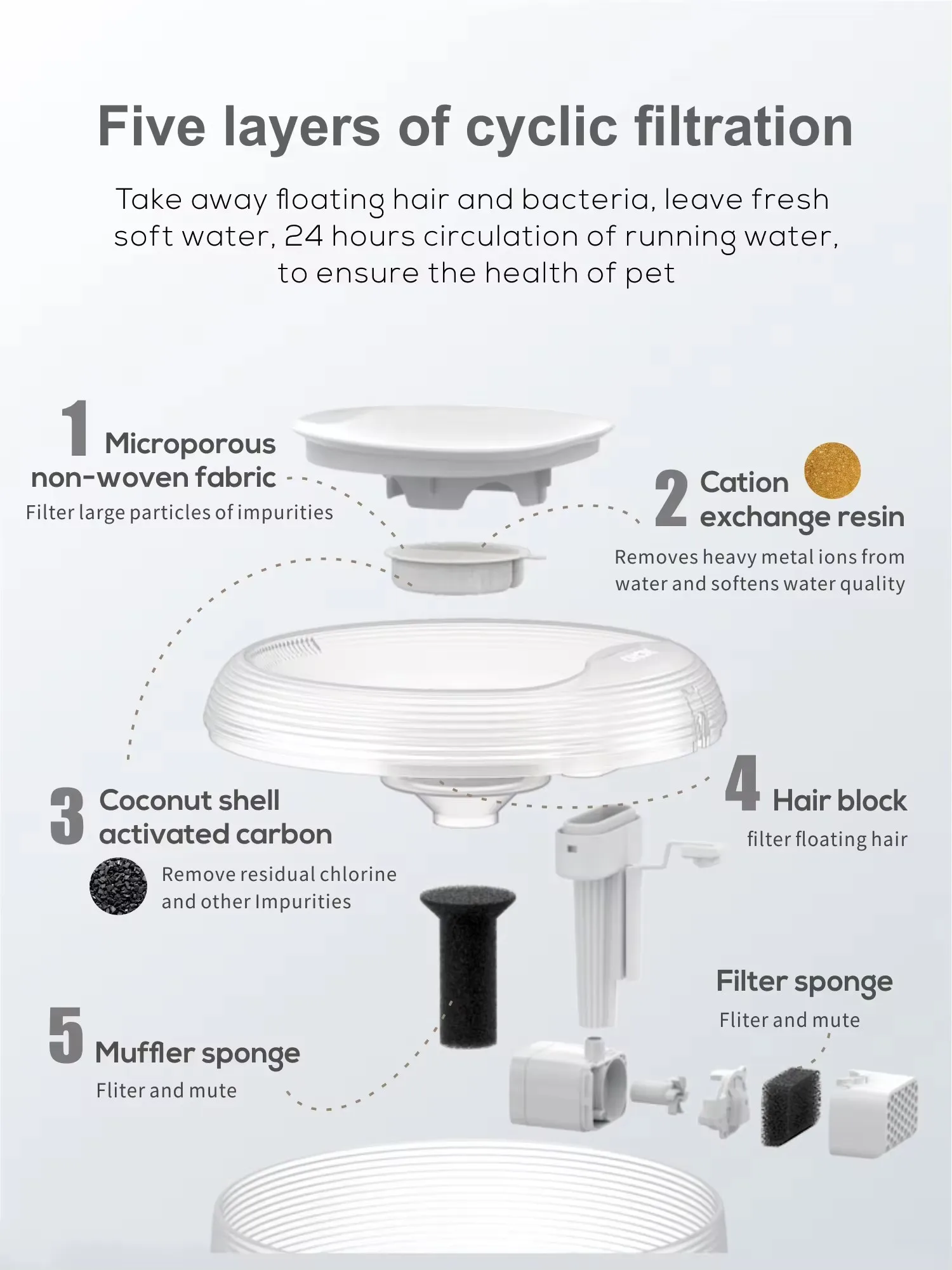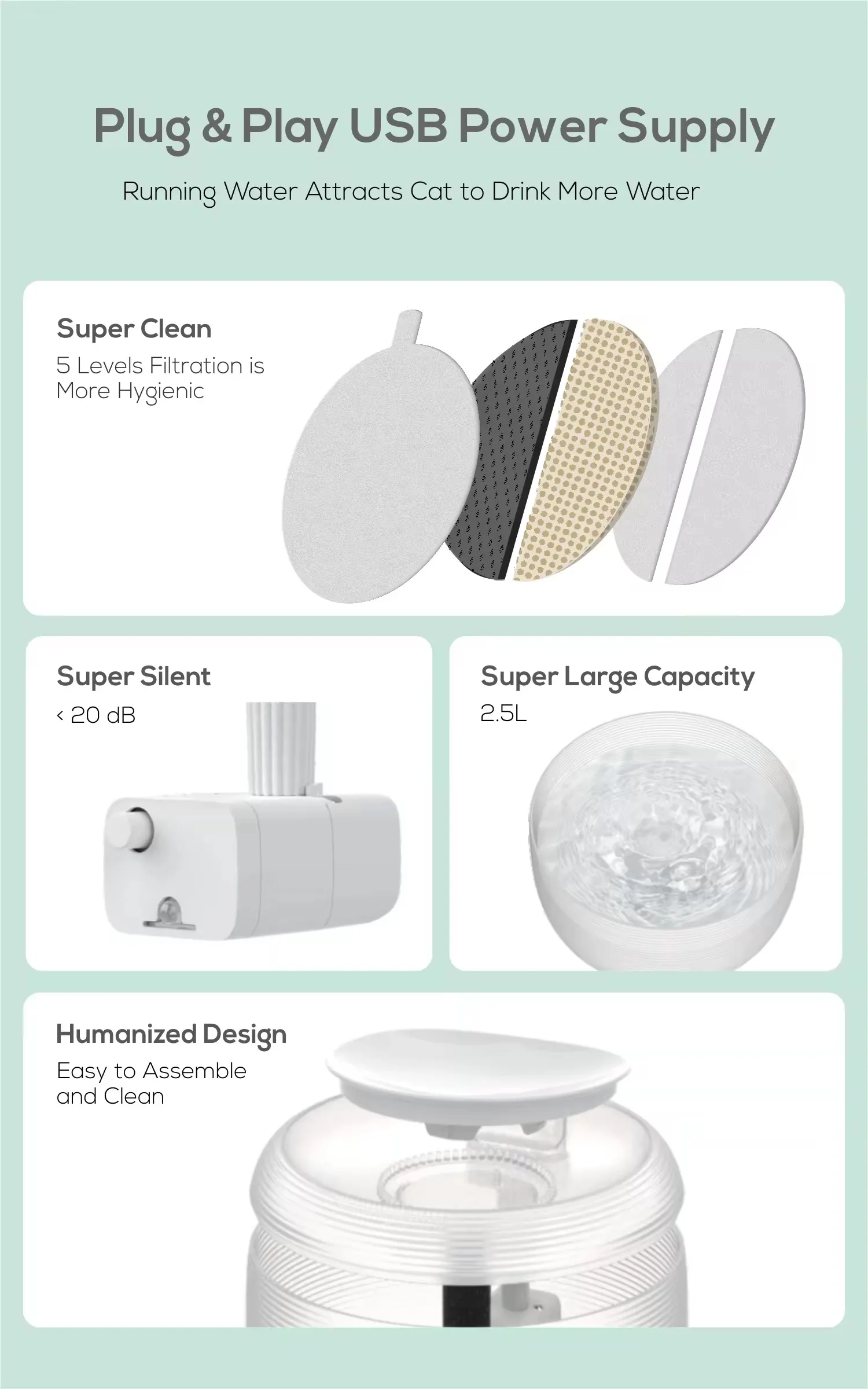 Dispensador de agua extremadamente silencioso para gatos y perros, fuente de agua para mascotas con luz LED integrada, 2,5 L