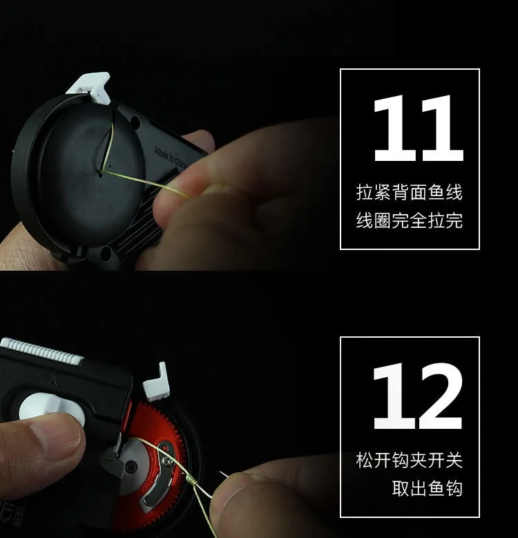 Este anudador automático de línea de pesca es adecuado para atar muchos tipos de anzuelos, de 0,8 # a 13 #.