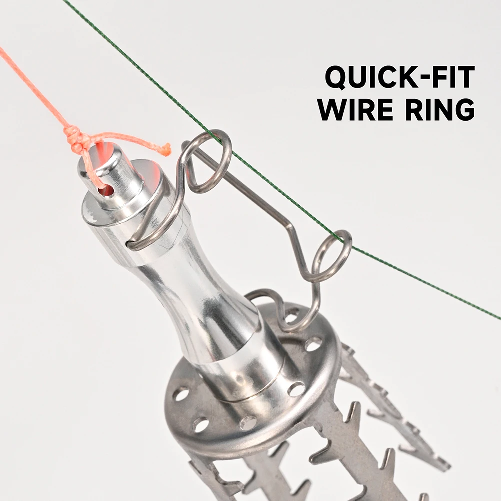 *Eslot de señuelo de acero inoxidable: dentado proporciona un agarre fácil y un agarre seguro del señuelo y el anzuelo, lo que aumenta la tasa de éxito de la recuperación.