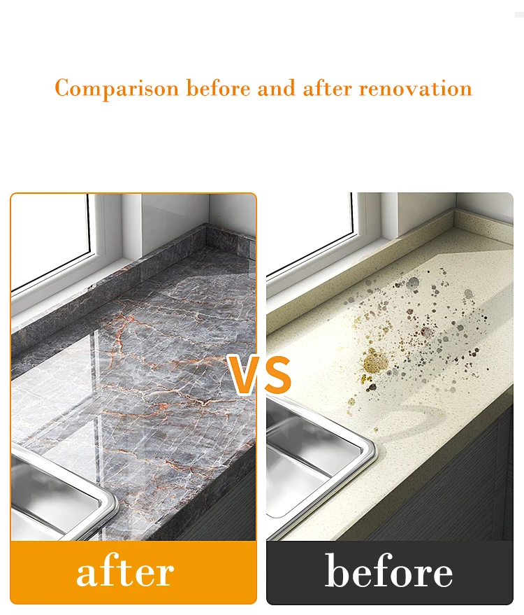 Este producto es una pegatina con patrón de imitación de mármol, hecha principalmente de papel de aluminio y PET.Es un papel pintado decorativo resistente al aceite, a la suciedad y al agua.Fácil de instalar, se puede cortar libremente (las tijeras y los cuchillos artísticos son suficientes), el producto viene con respaldo adhesivo y se puede pegar libremente.El patrón es una textura natural que simula patrones de mármol y se usa comúnmente para superficies lisas en cocinas, estufas, salas de estar, restaurantes, etc.El patrón es realista y asequible.