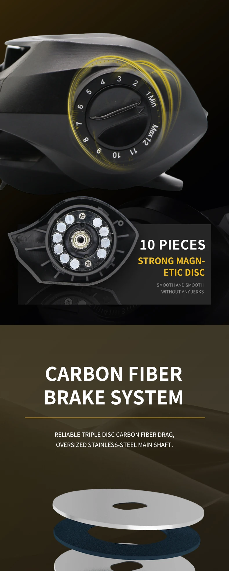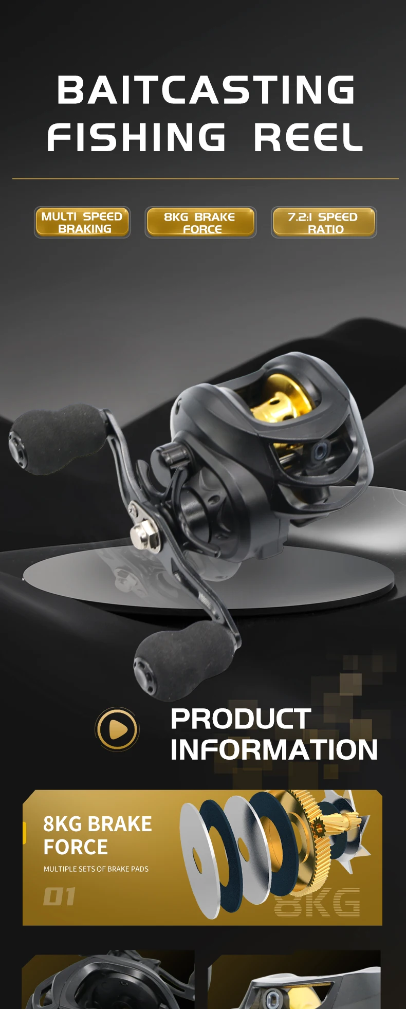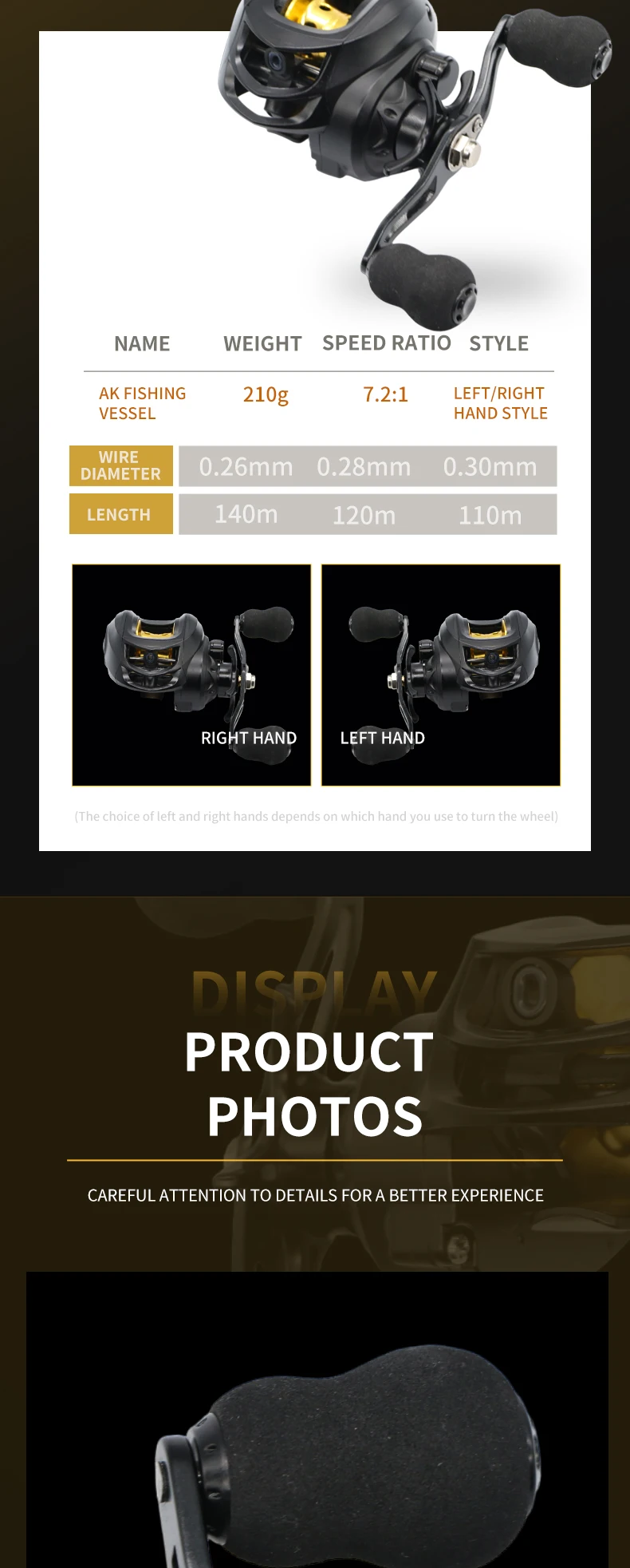 DK-Engranajes de carrete de peso ligero, relación 7,2 1 con clicker de arrastre, carrete de pesca Baitcasting, carrete de pesca de alta velocidad