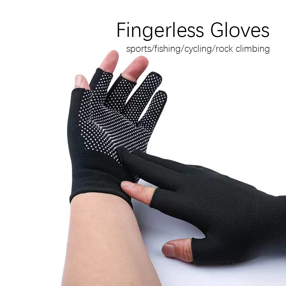 DNDYUJU 1 par de guantes de pesca, guantes para hombre y mujer, guantes antideslizantes universales transpirables para exteriores, guantes de pesca con 3 dedos cortados