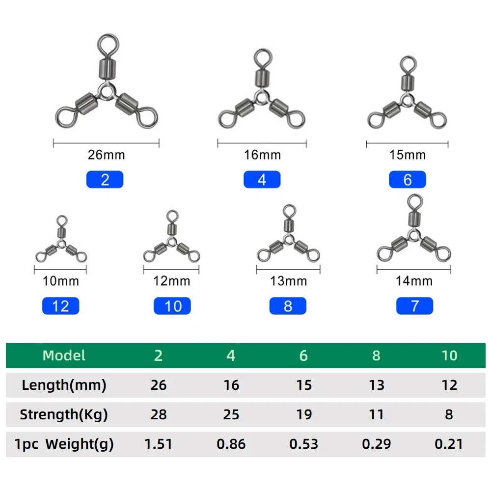 DNDYUJU 10 Uds conector de pesca de 3 vías rodamiento de bolas giratorios rodantes forma de O giratorios rodantes de tres vías aparejos de pesca anzuelos