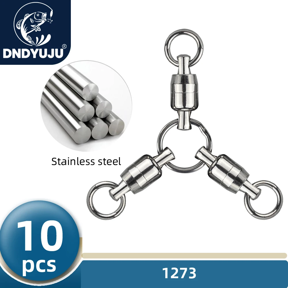 DNDYUJU 10X pesca en el mar de acero inoxidable de tres vías pesca giratoria conector de rodamiento de bolas de alta resistencia gancho de anillo sólido rodante