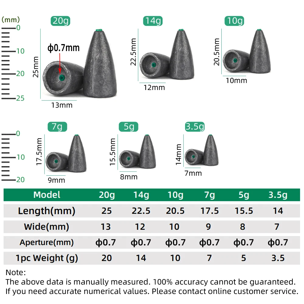 DNDYUJU 10 Uds plomo plomo peso de pesca bala peso de plomo plantilla cabeza de agua dulceTexas conjunto de aparejos de pesca 3,5g 5g 7g 14g 20g