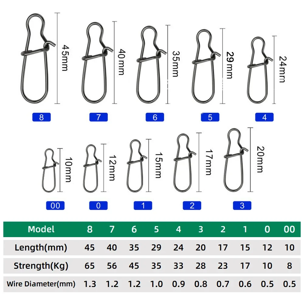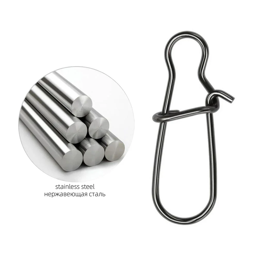 DNDYUJU 150 unids/lote conector de pesca de bloqueo de Clip rápido Pin de seguridad de acero inoxidable herramienta de aparejos de pesca giratoria para señuelos anzuelos