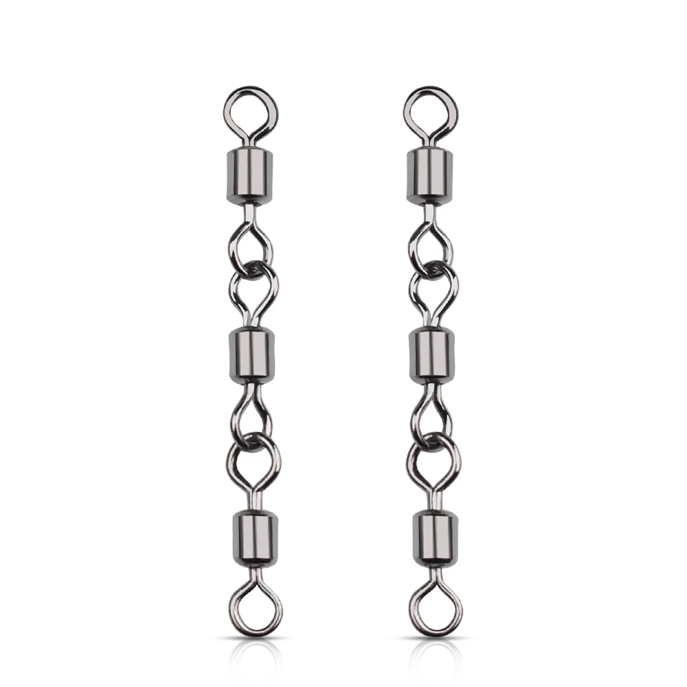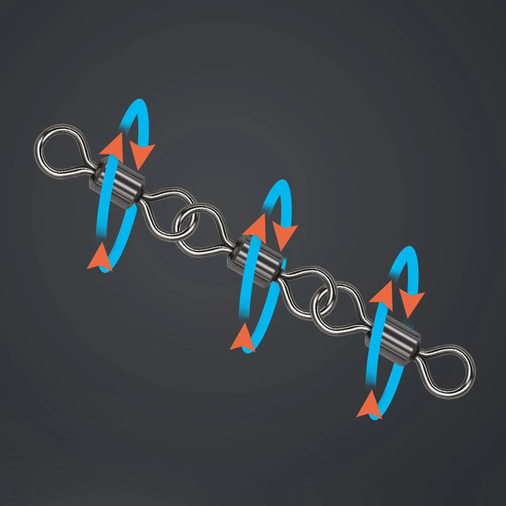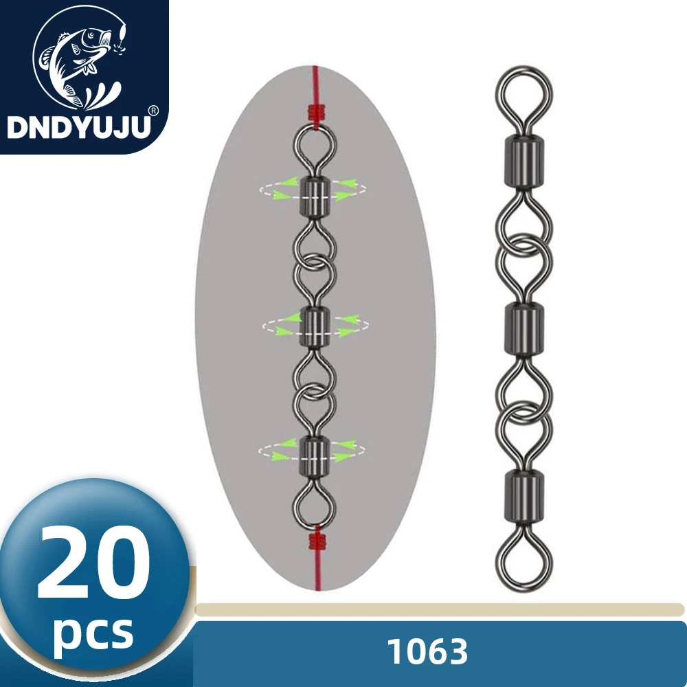 Rodamiento de 20 piezas DNDYUJU, eslabones giratorios de pesca seguros de acero inoxidable con Triple Conexión portátil, accesorios para aparejos de pescaPrueba de longitud de tamaño