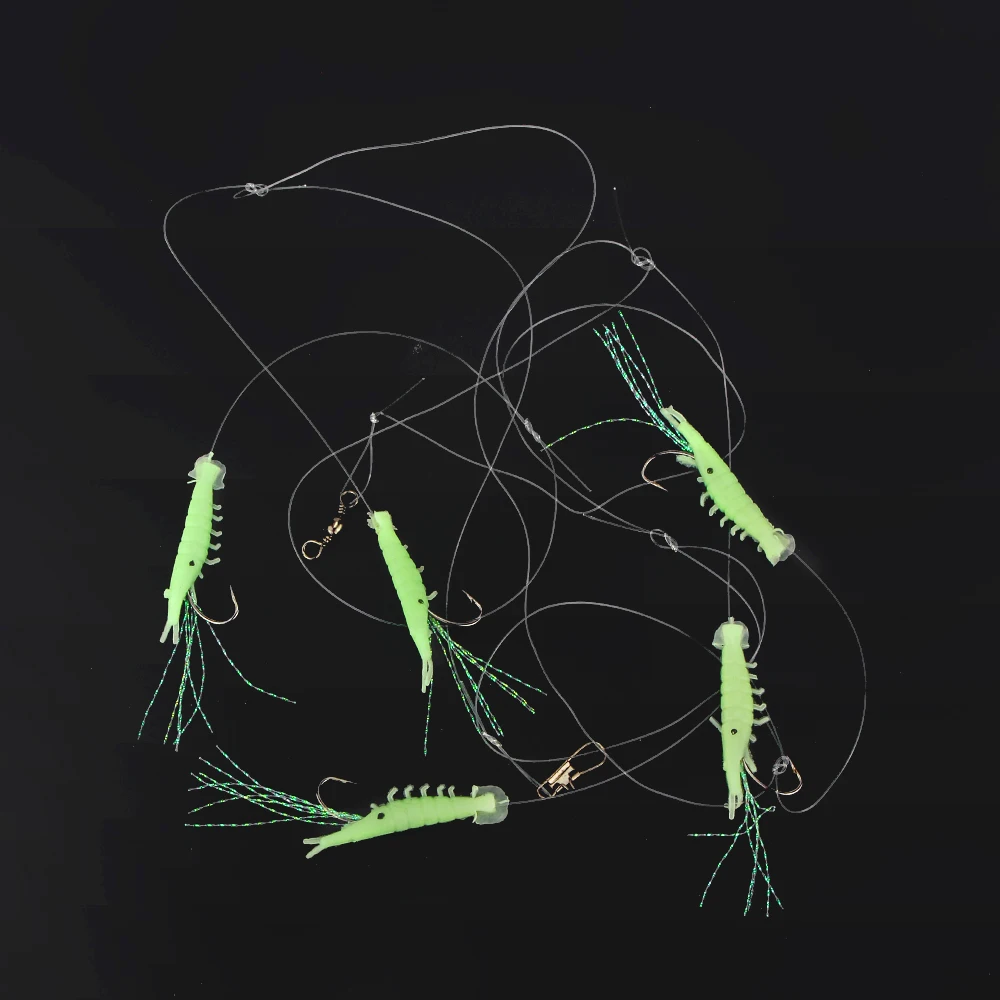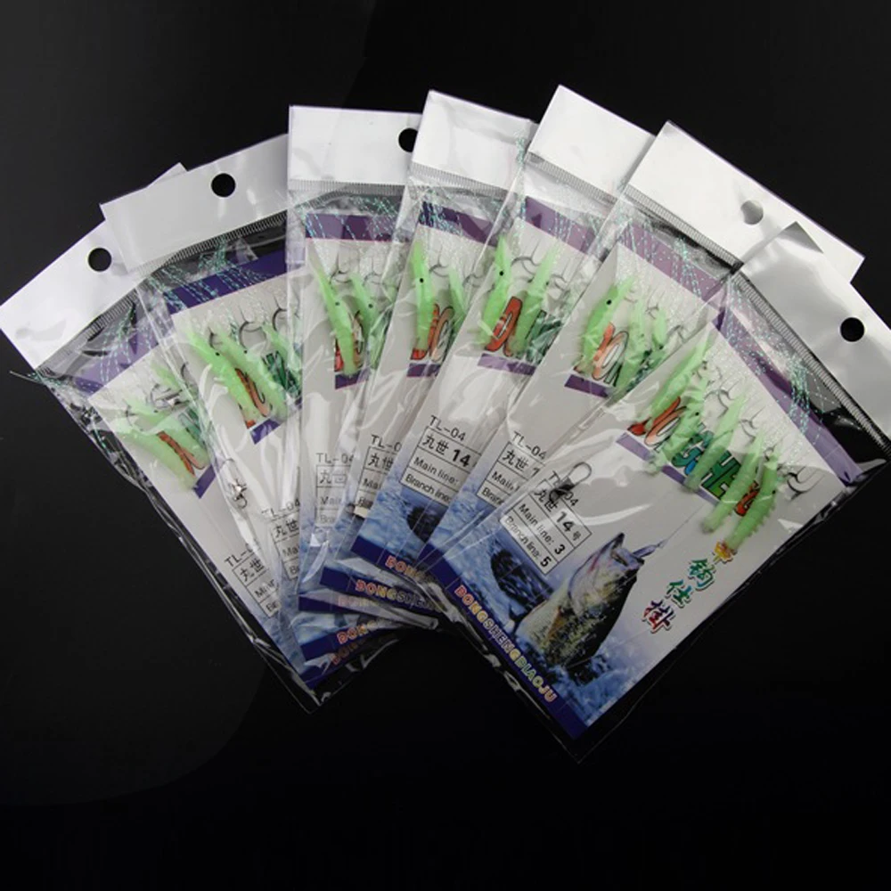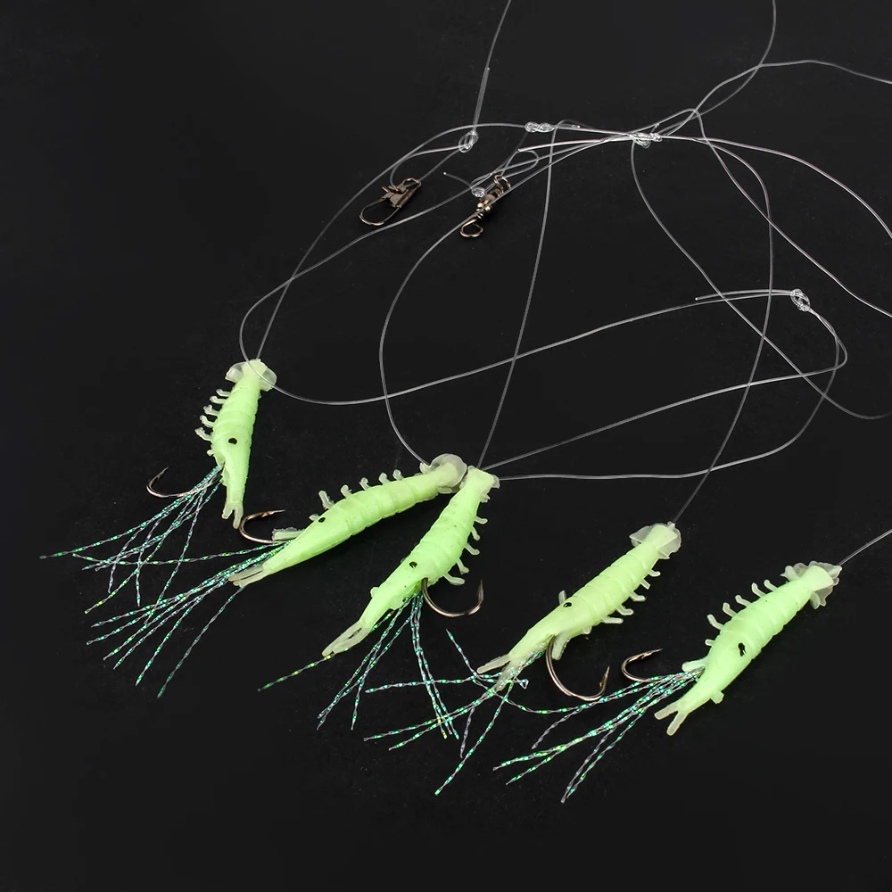 DNDYUJU-3 bolsas de 5 ganchos de cuerda, señuelos luminosos Mini camarones suaves, anzuelos de pesca artificiales falsos, cebos que brillan en la oscuridad