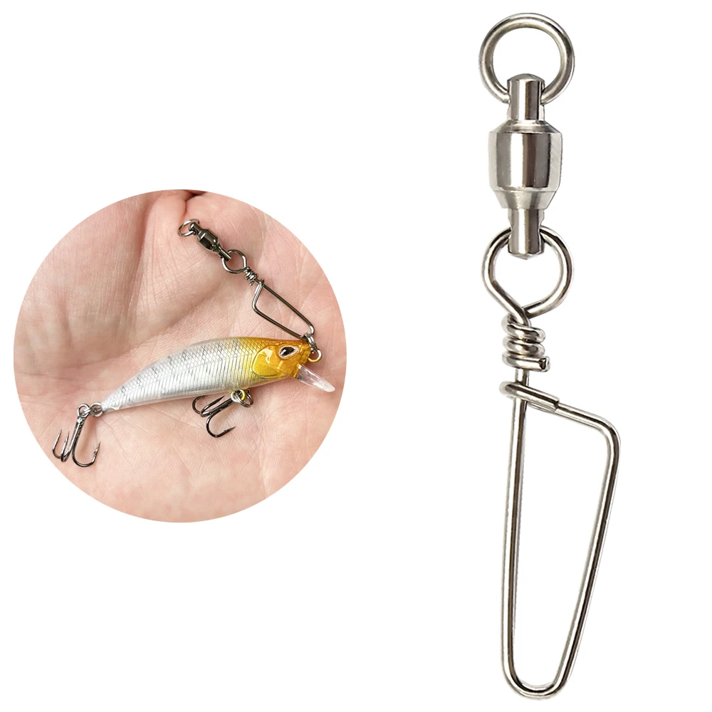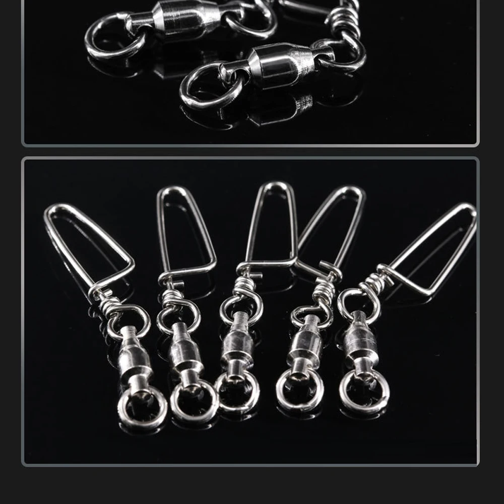 DNDYUJU 30 Uds conector de pesca señuelo Pin pesca giratorio rodamiento de bolas hebilla rodante inoxidable Snap Bead anillo gancho herramienta de pesca