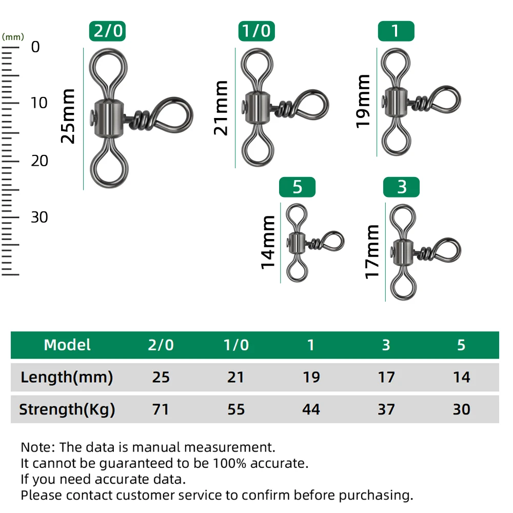 DNDYUJU 30 Uds. Giratorio de pesca de línea cruzada de barril de 3 vías con anillo sólido conector de línea de anzuelo de pesca de latón accesorios de pesca