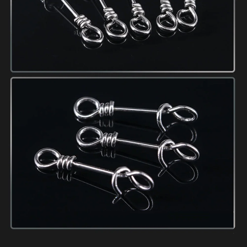 DNDYUJU 50 Uds refuerzo de acero inoxidable bloqueo rápido abrazadera de resorte a presión hebilla señuelo aparejos de caída conector para accesorios de pesca