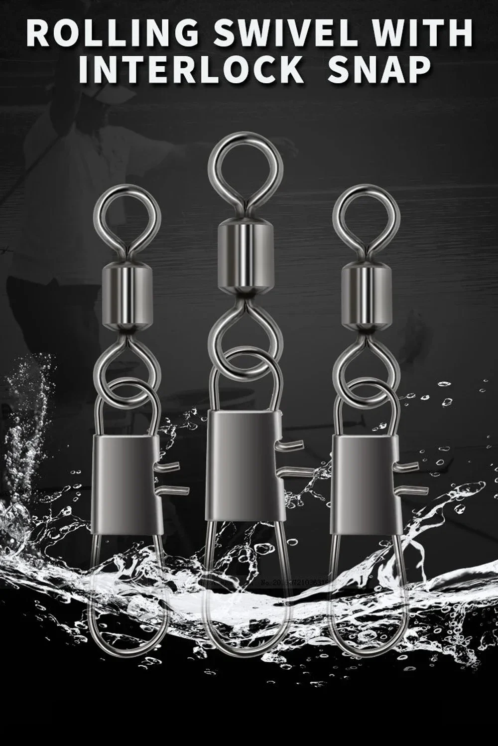 DNDYUJU 50 Uds conector de pesca giratorio con enclavamiento Snap de acero inoxidable para anzuelo señuelo aparejos de pesca
