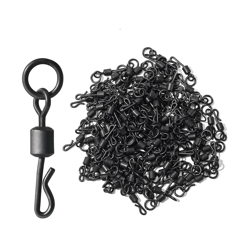 DNDYUJU Anillo Flexible Giratorio con Anillo de Cambio Rápido, Conector de Terminal de Pesca de Carpa, Anzuelo Negro Mate, 10 a