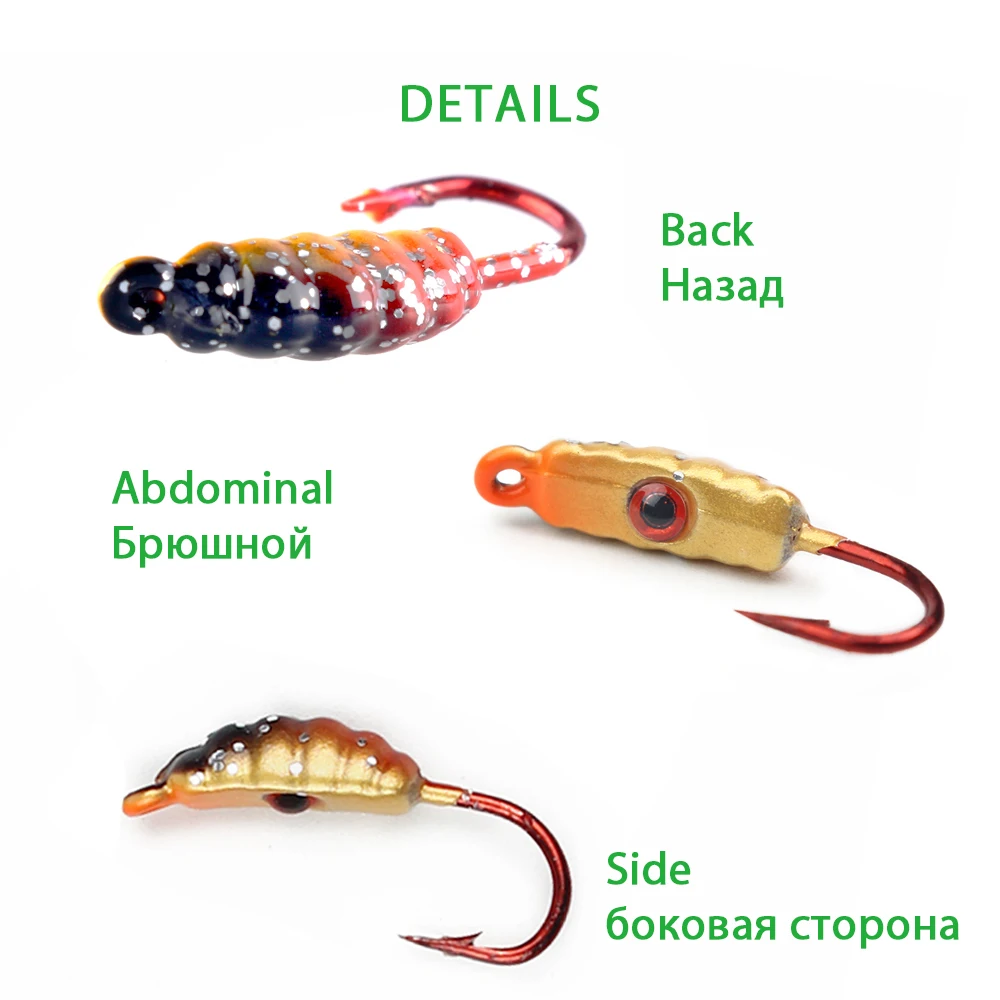 DNDYUJU 4 unids/lote 23mm/1,5g señuelo de pesca en hielo gusano el nuevo cebo de Metal Plantilla de hielo 6 colores Mini plomo anzuelo de pesca de invierno