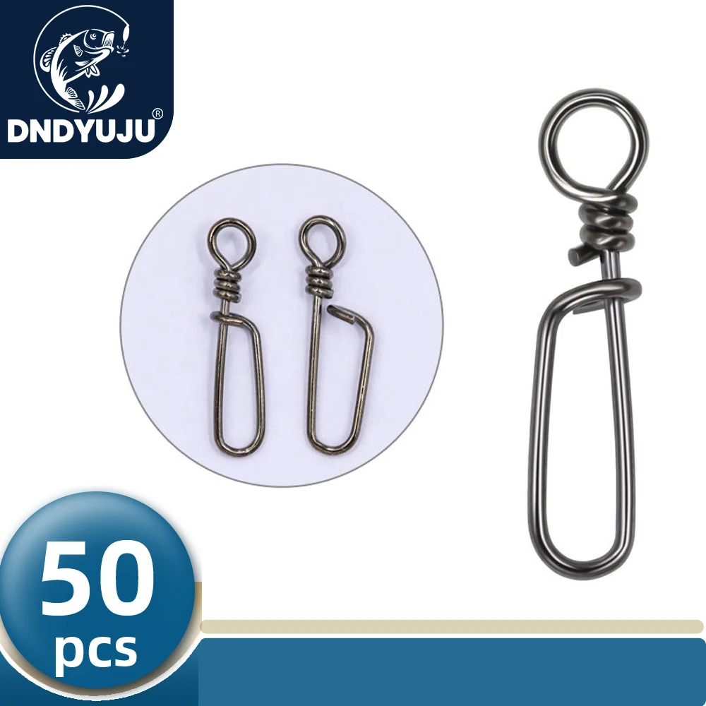 DNDYUJU-conector de pesca de calamar de acero inoxidable, 50 piezas, señuelo de pesca a presión, Pin giratorio, anillos sólidos, broches de seguridad, gancho de pesca
