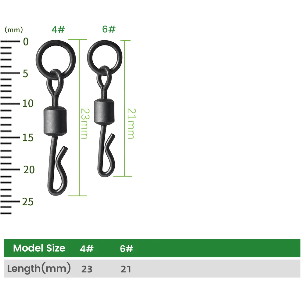 DNDYUJU Equipo de Pesca de Carpa, Accesorios de Anillos Giratorios de Cambio Rápido, Gancho Giratorio Flexible, Aparejo Ronnie, 30 Piezas