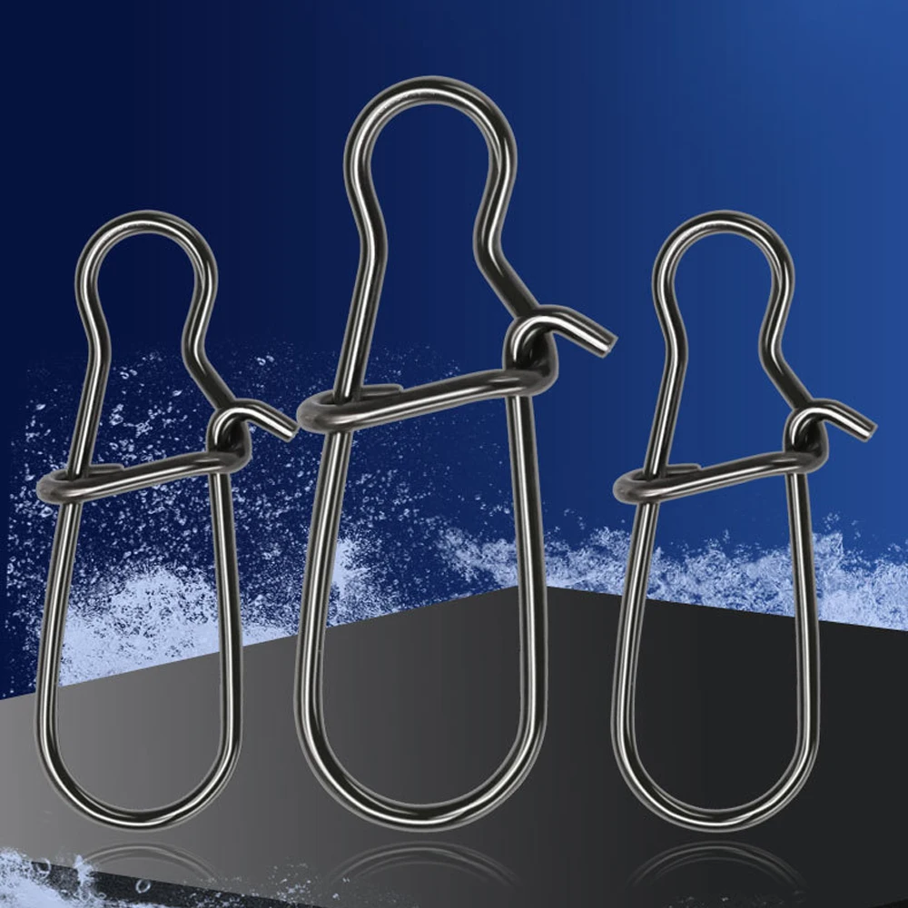 DNDYUJU-gancho de pesca de acero inoxidable, enganchado a presión, Pin de cierre, accesorios giratorios, barril giratorio, señuelo, 30-50 piezas